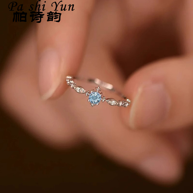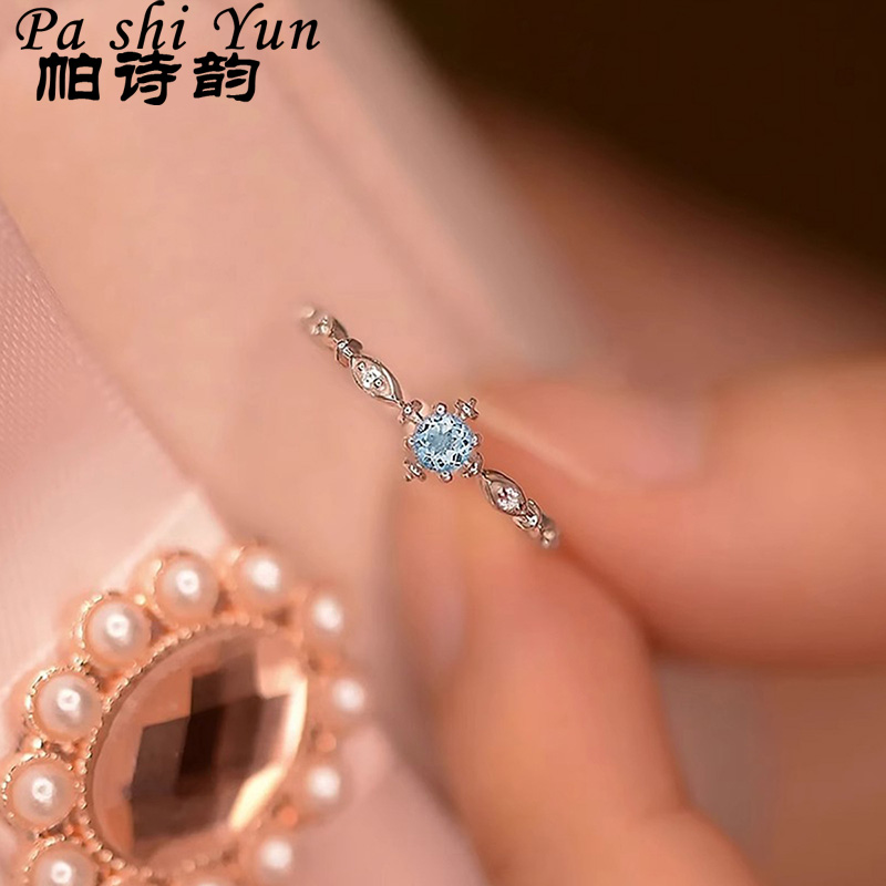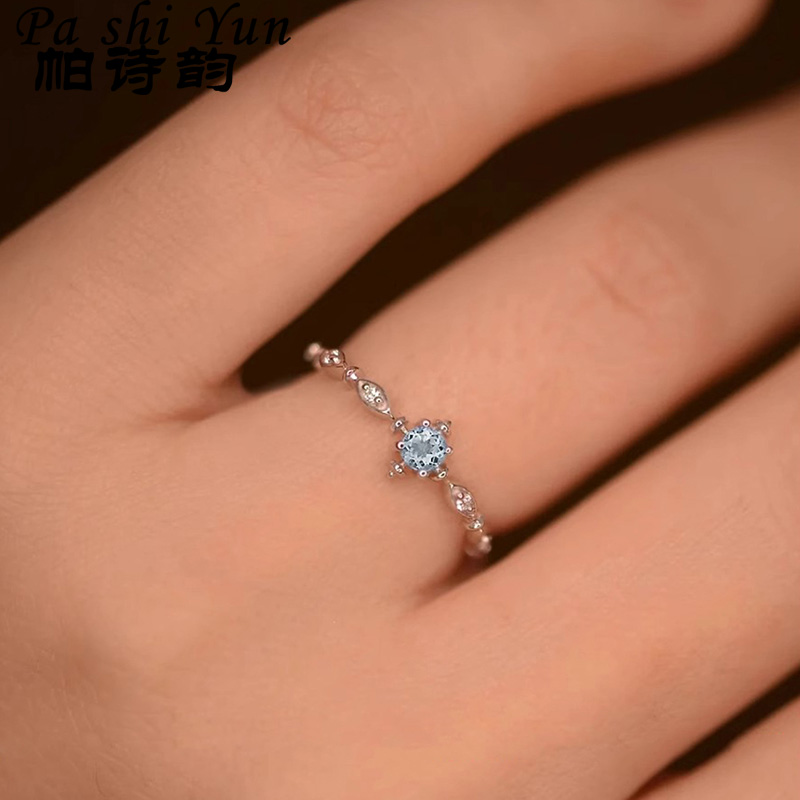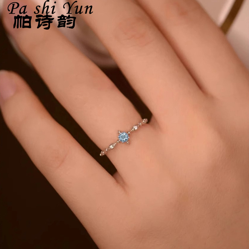 帕诗韵S925纯银法式甜美风蓝色雪花锆石戒指小众百搭清新开口指环