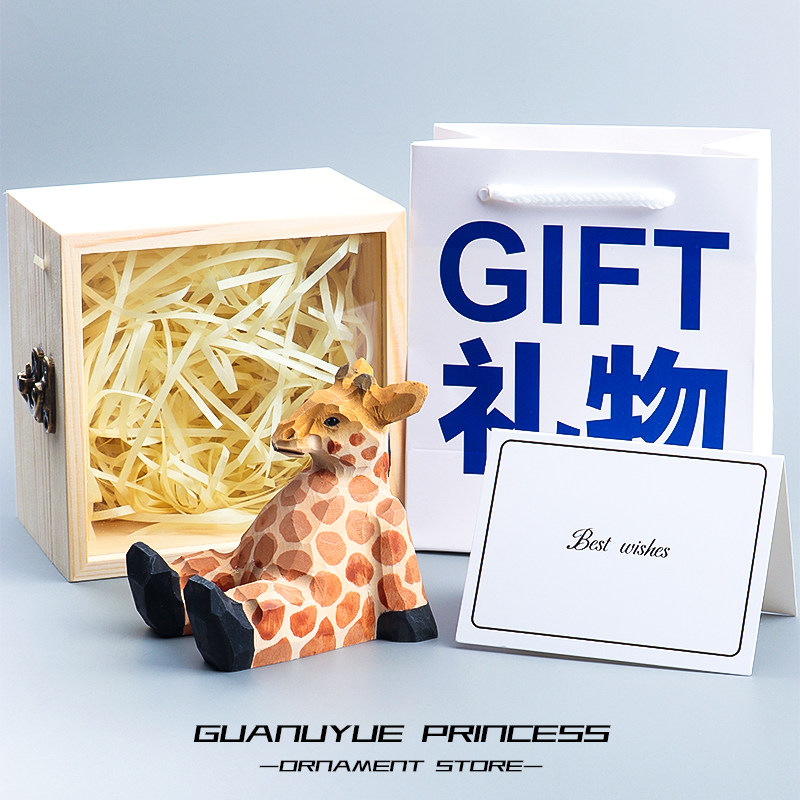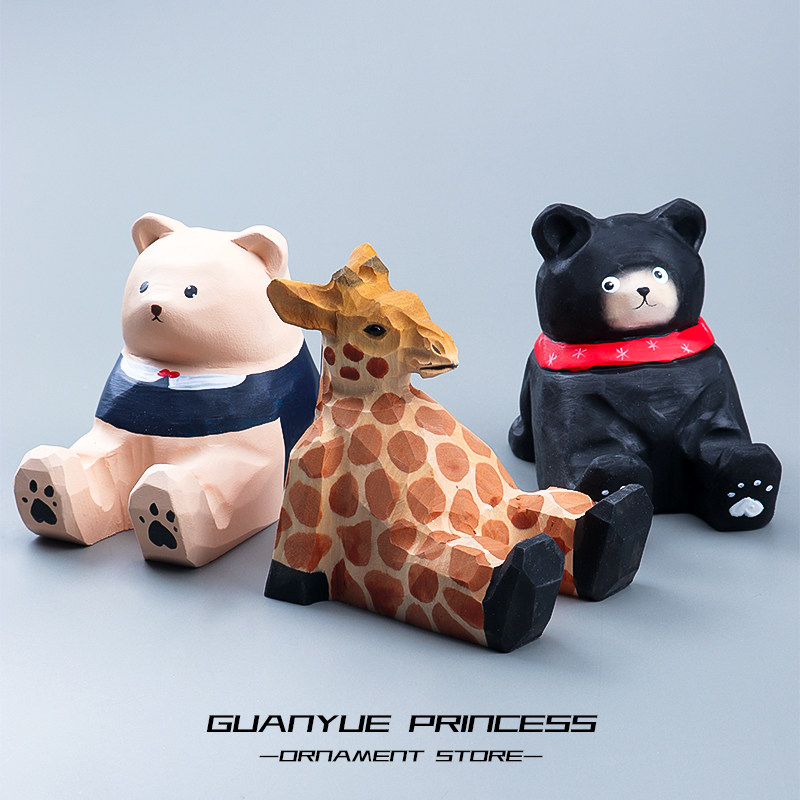 手工木雕实木长颈鹿动物手机支架桌面办公室可爱创意车载生日礼物