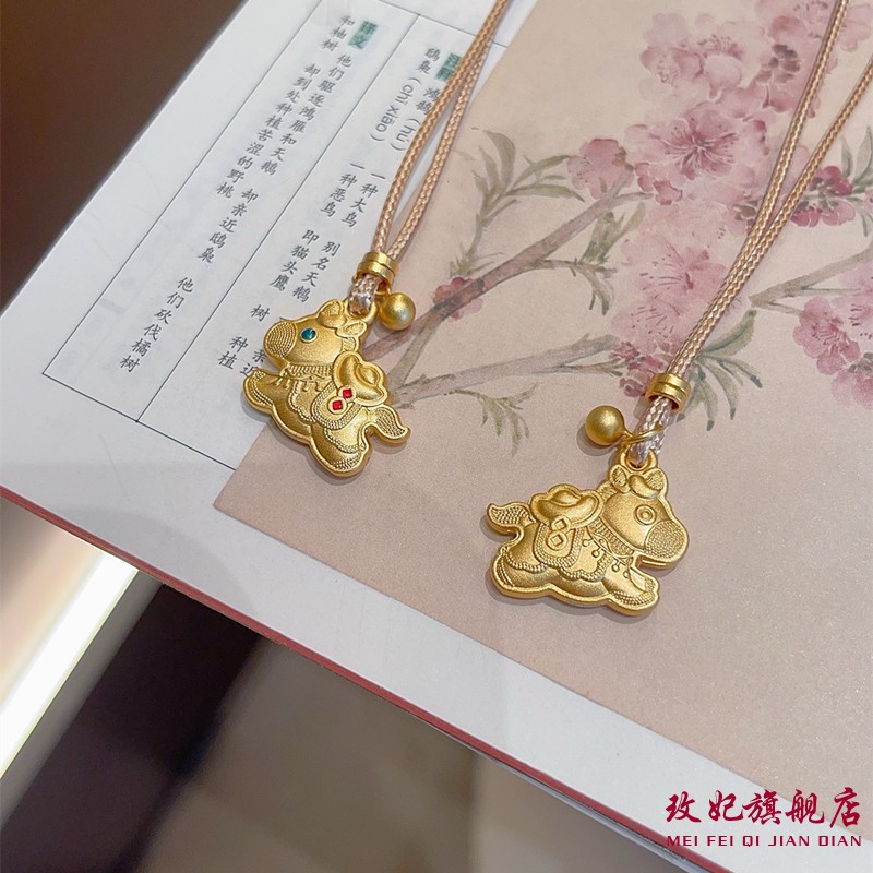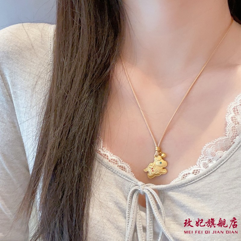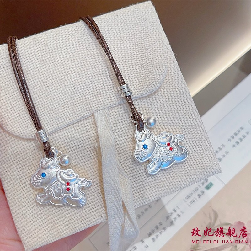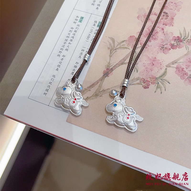 玫妃珐琅彩小马吊坠纯银项链足银999新中式编织绳毛衣链送女友