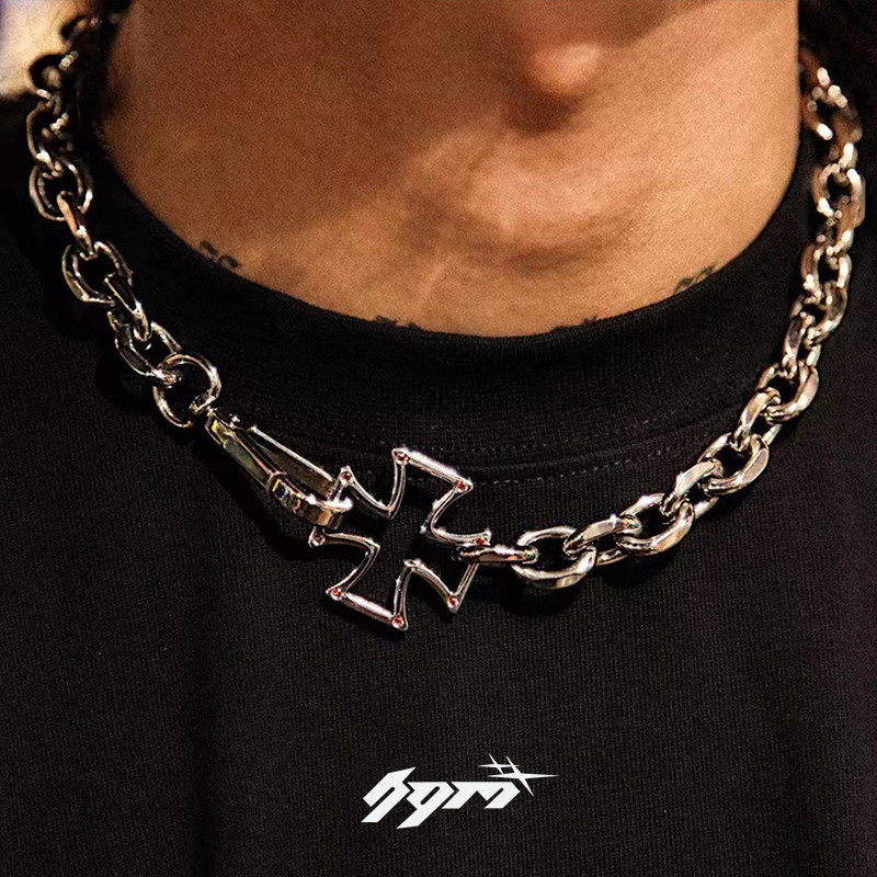 项链男镂空十字架颈炼短款欧美嘻哈百搭个性小众潮女生古巴链情侣