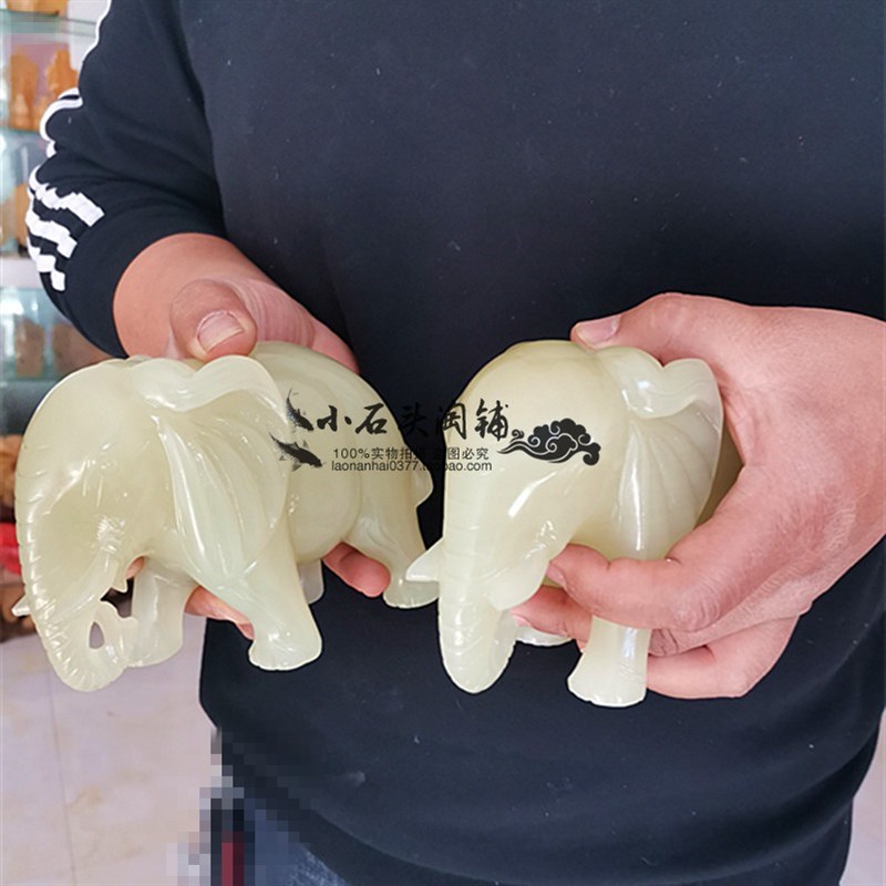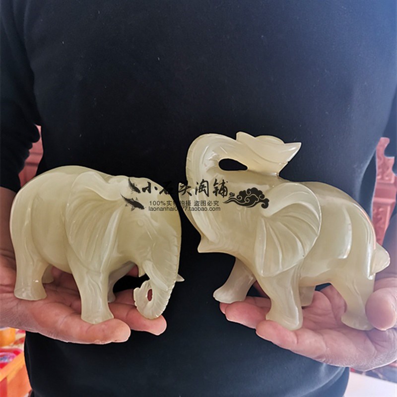 天然白玉大象手工动物桌面摆件现代家居客厅玄关酒柜简约朋友送礼