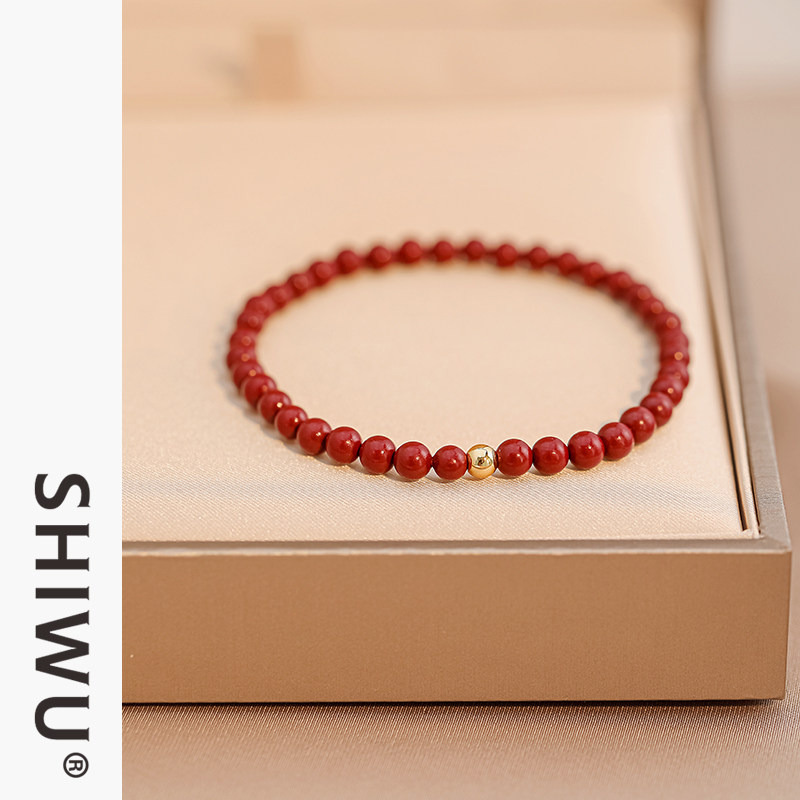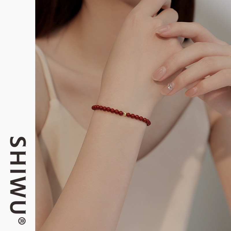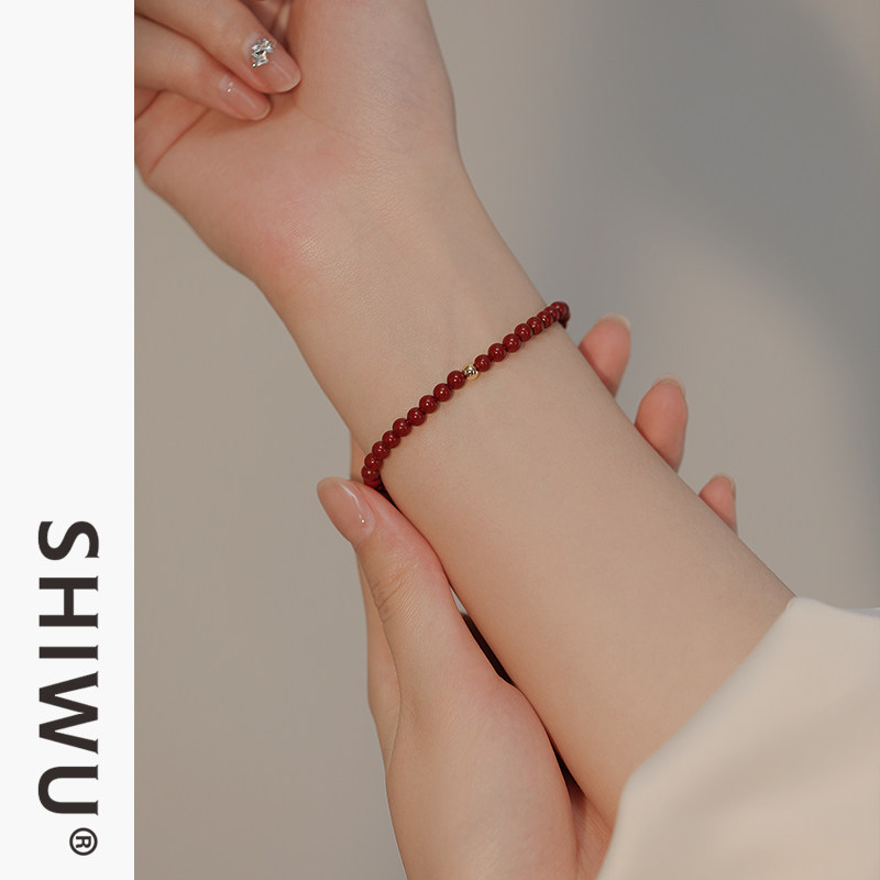 饰悟银饰金珠朱砂手串手链手饰品本命年红色新年珠子手链女款朱砂