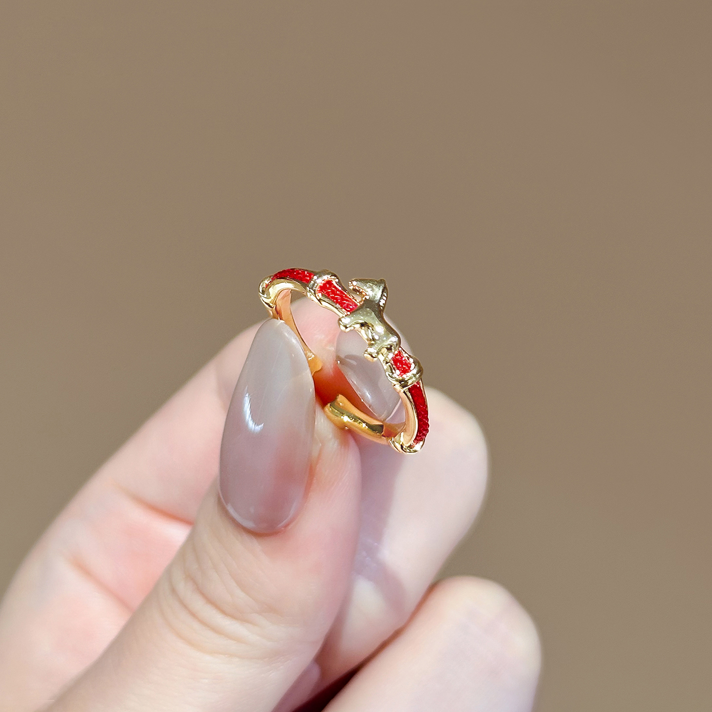 2026新年红色小马戒指女小众设计精致时尚本命年高级感开口食指戒