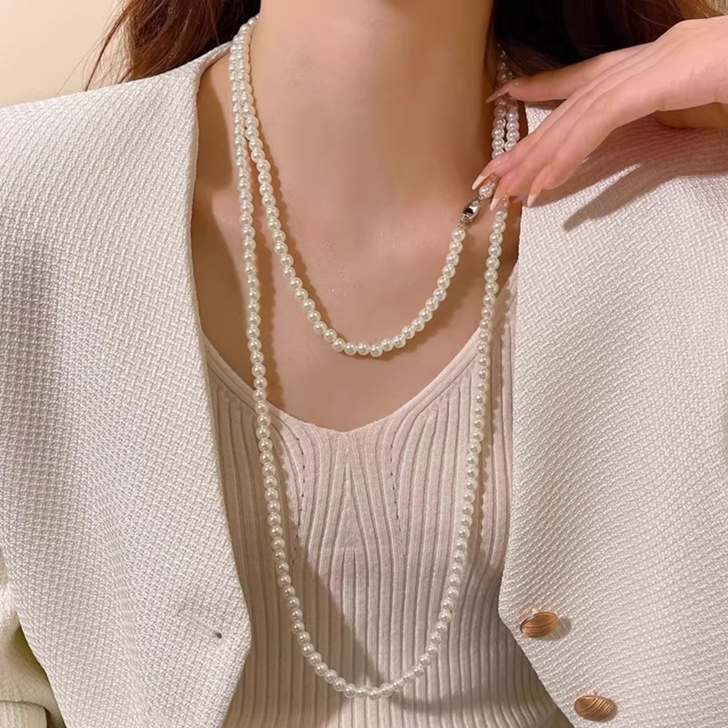 鞠婧祎同款羽绒服卫衣毛衣搭配珍珠项链轻奢高级感小众叠戴女配饰