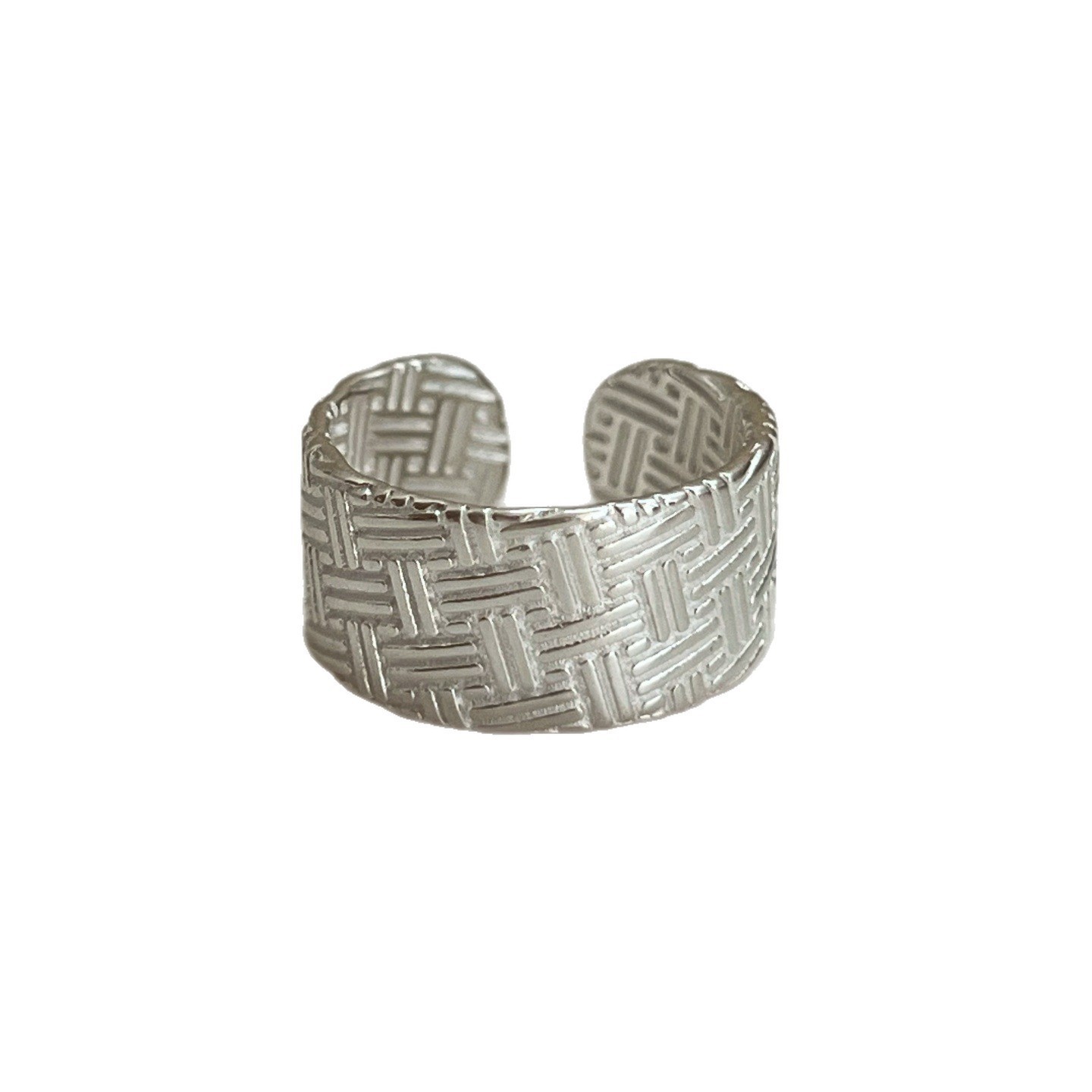 小众设计感编织纹理戒指女复古重工韩版气质开口指环个性食指戒潮