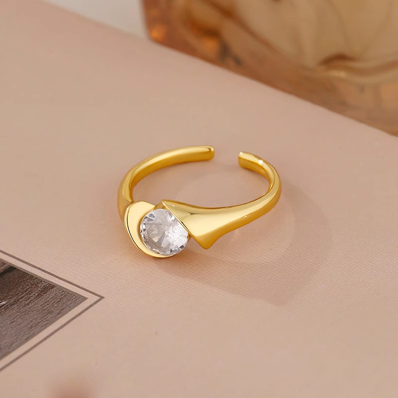 个性开口马蹄莲锆石戒指食指指环简约冷淡风小众设