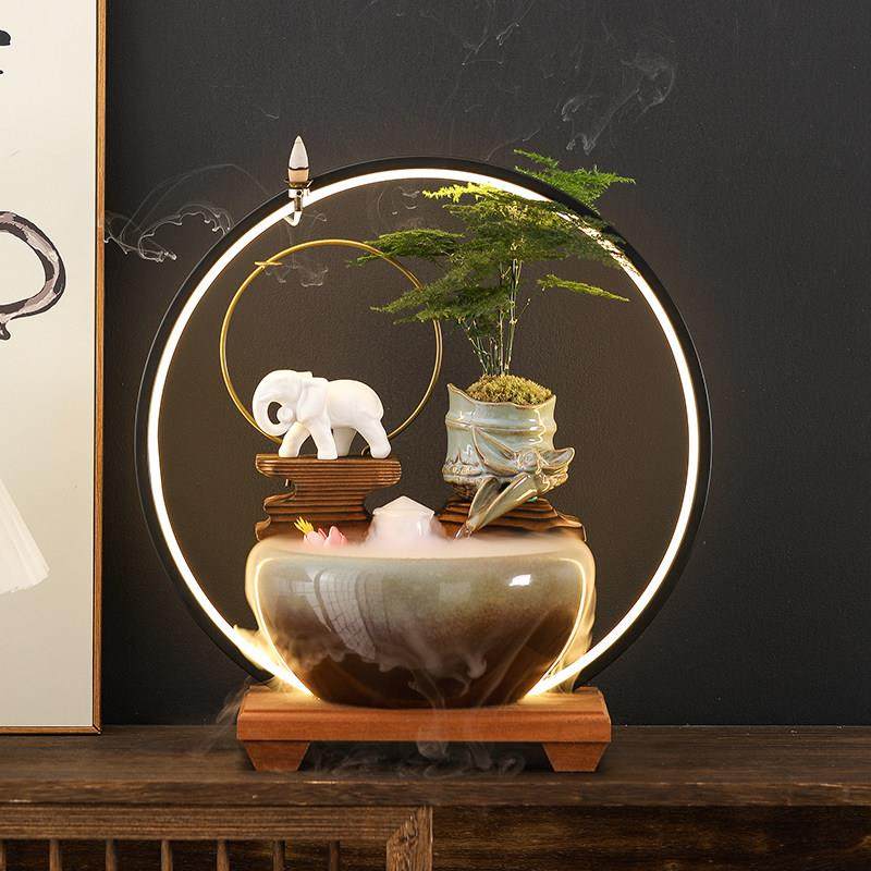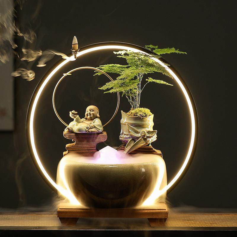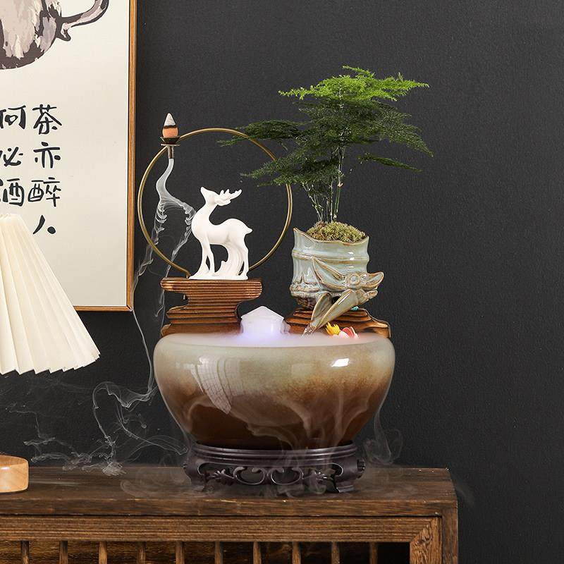 八方来财流水摆件循环水办公室招财开业装饰礼品客厅茶桌小型鱼缸