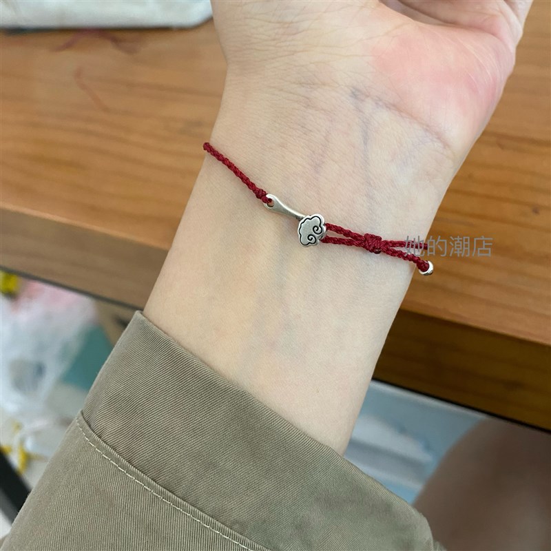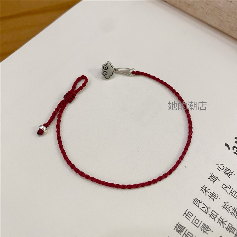 925银如意手链中式古风手绳手工编制四N股平安结本命年红绳女