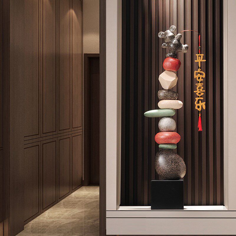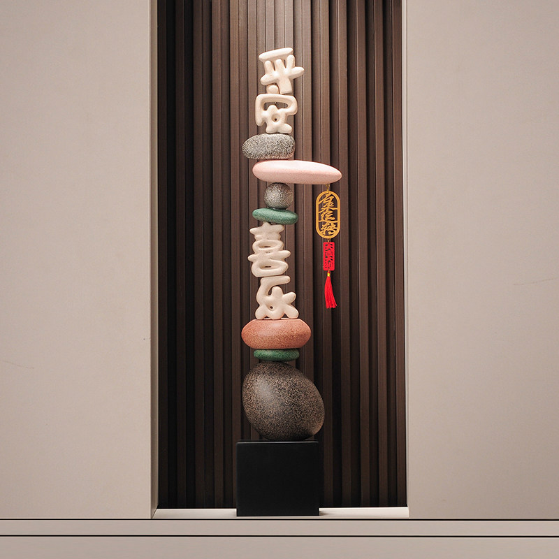 入户玄关平安喜乐时来运转摆件客厅角落大型落地竖高装饰品高级感