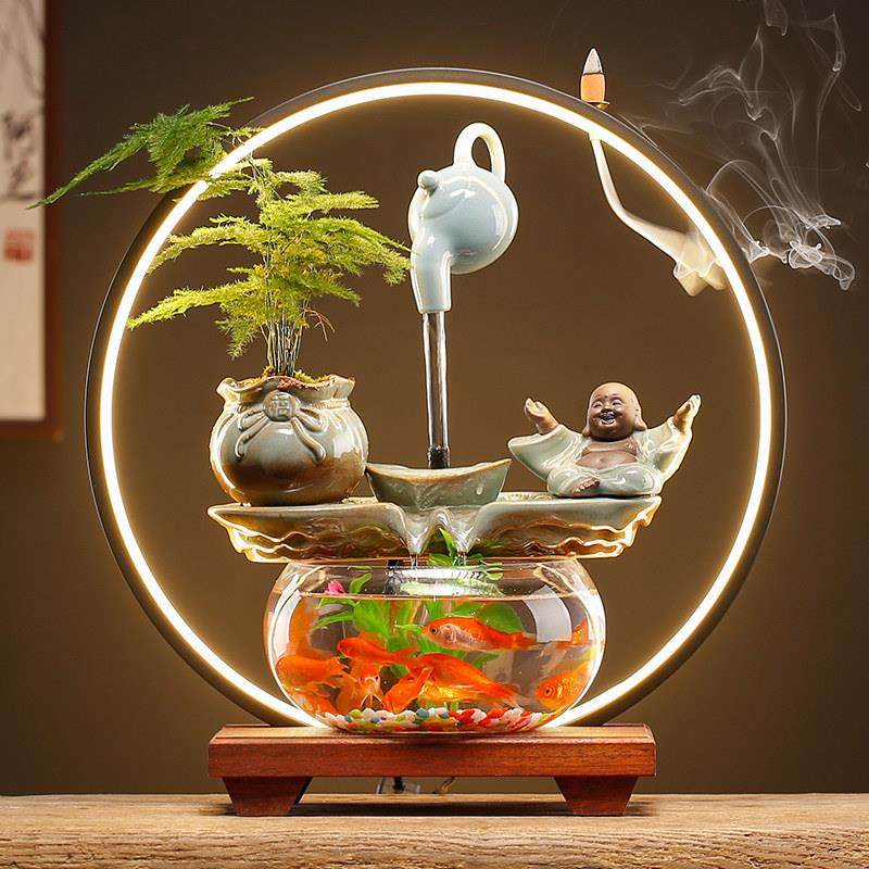 创意流水生财金鱼缸摆件循环水造景装饰客厅办公室桌面招财水族箱