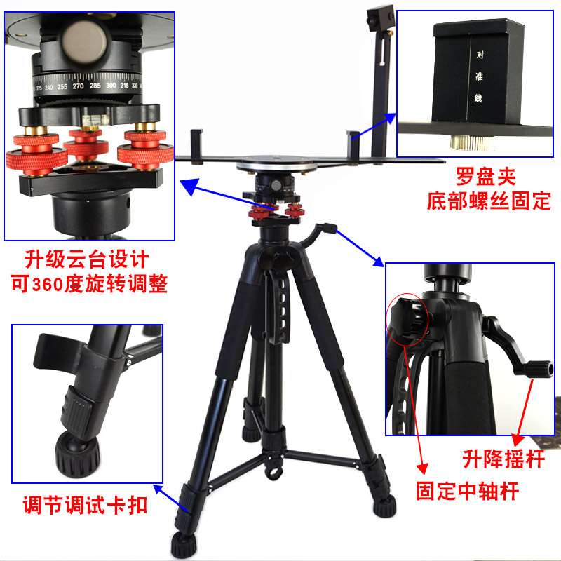 云台水平罗盘支架三脚架十字红外线360度旋转无磁便携水平罗经杖