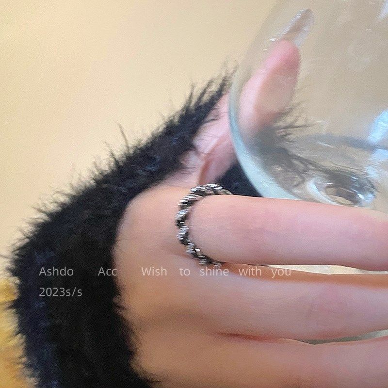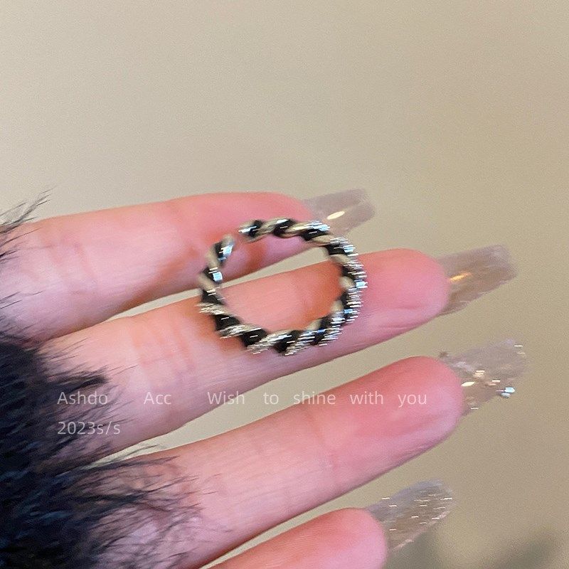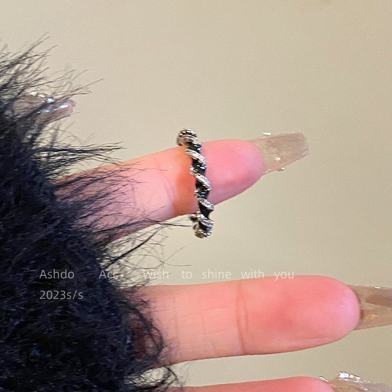冷淡风黑色滴釉开口缠绕戒指锆石气质精致感素圈小众设计感指环女
