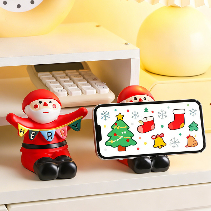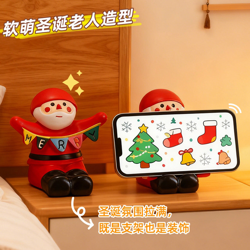 可爱圣诞老人手机支架桌面小摆件圣诞节礼物创意办公室平板支撑座