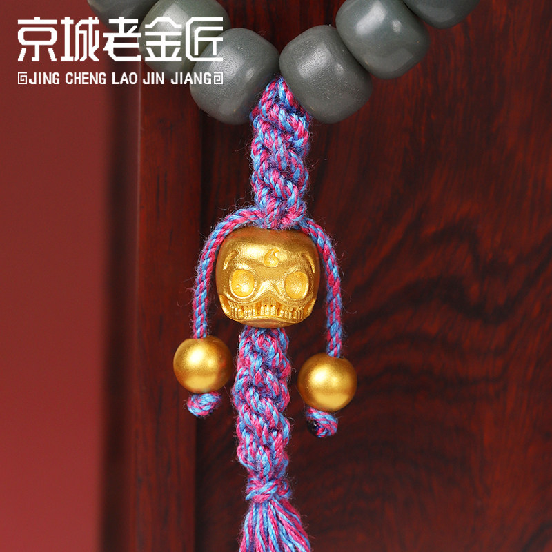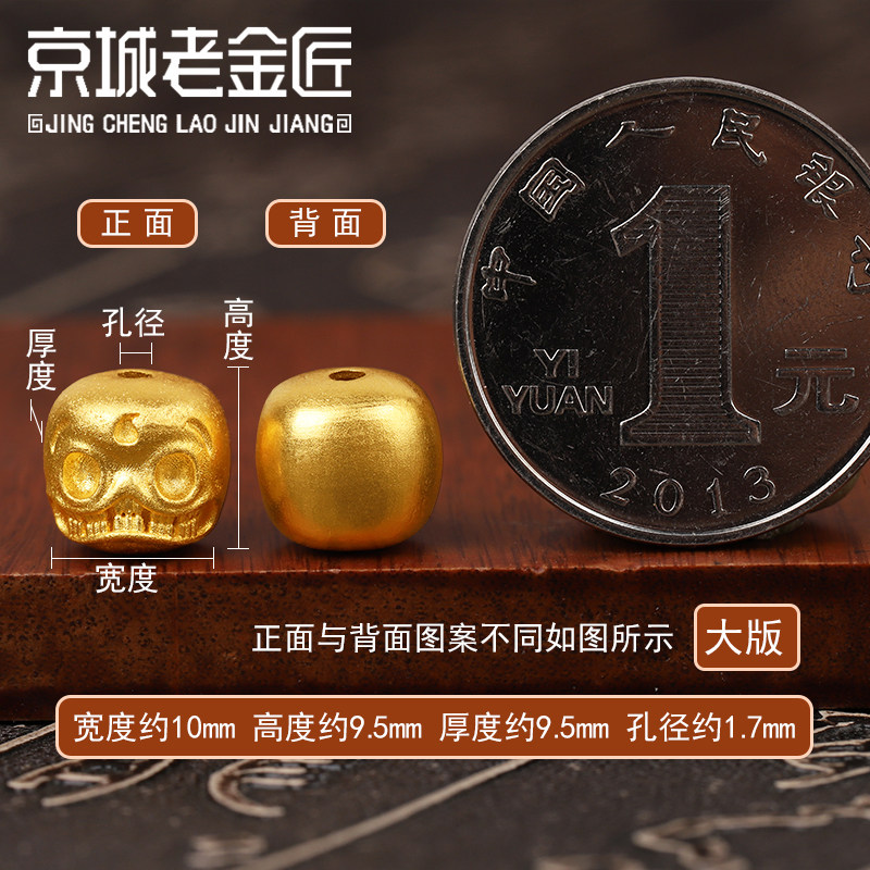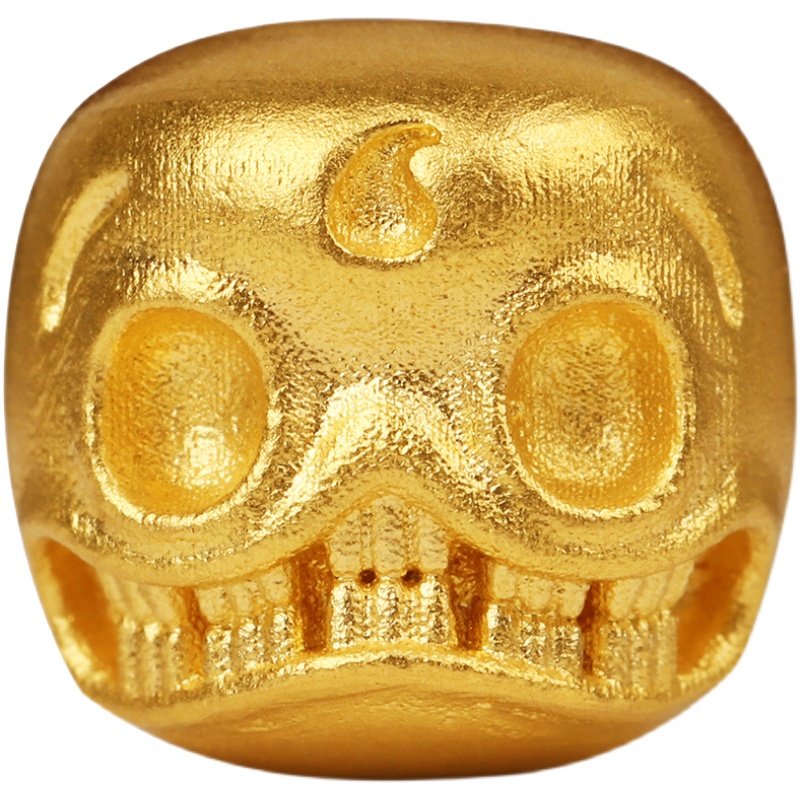 黄金阿呆转运珠背云999足金古法工艺骷髅头古玩文玩手串配件男女