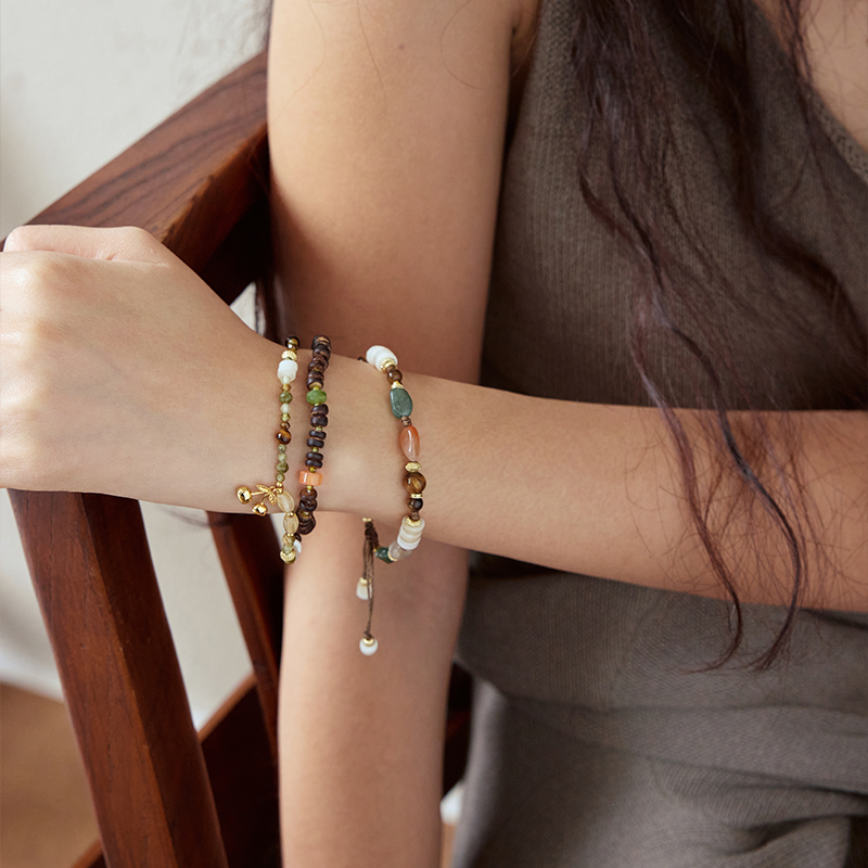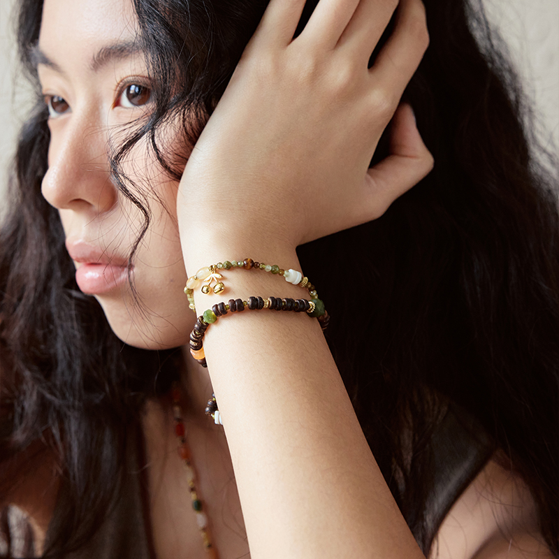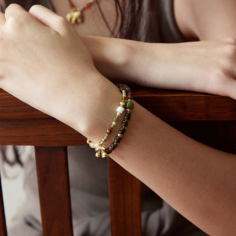 GOOGMO双层叠戴虎眼石玛瑙手串绿石榴石串珠小众设计感手链