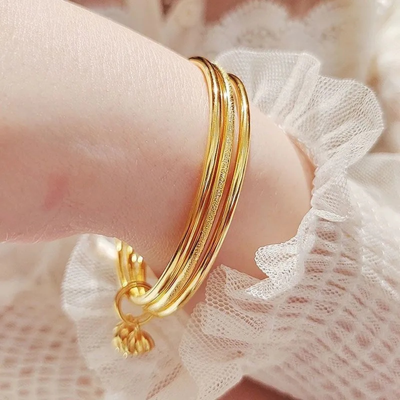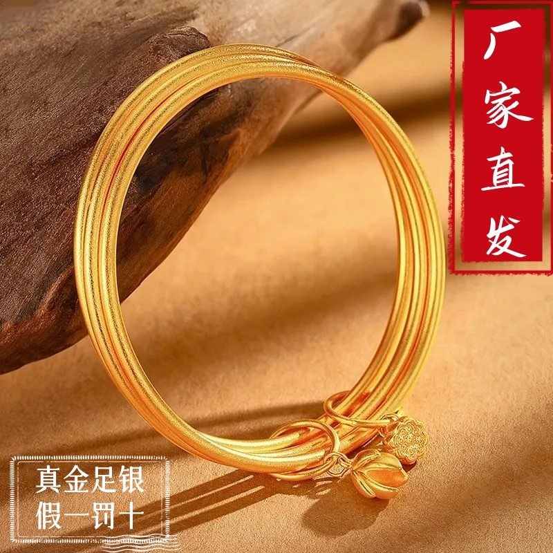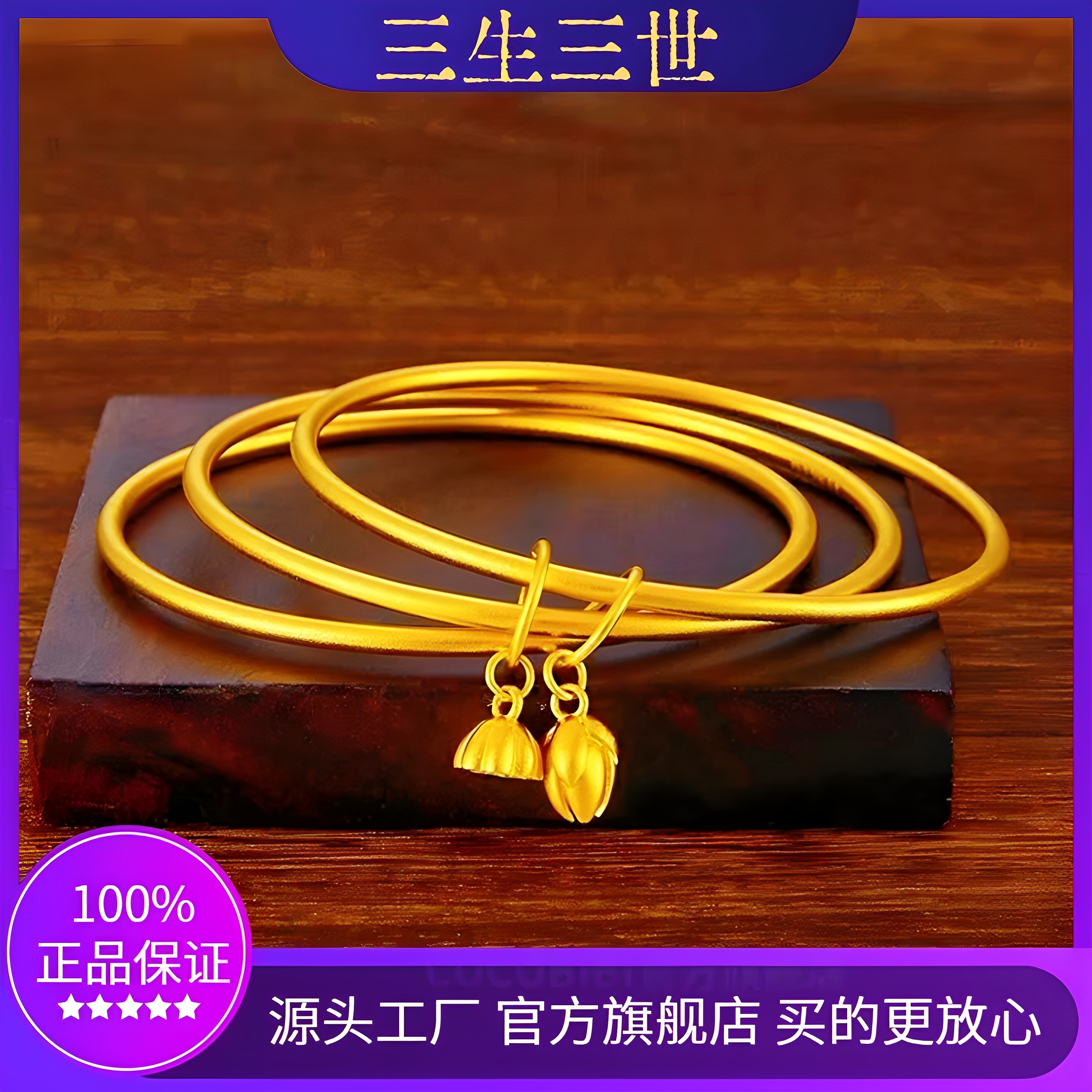 金包银三生三世黄金手镯莲蓬实心素圈手环圈叠戴包金镯子结婚三金
