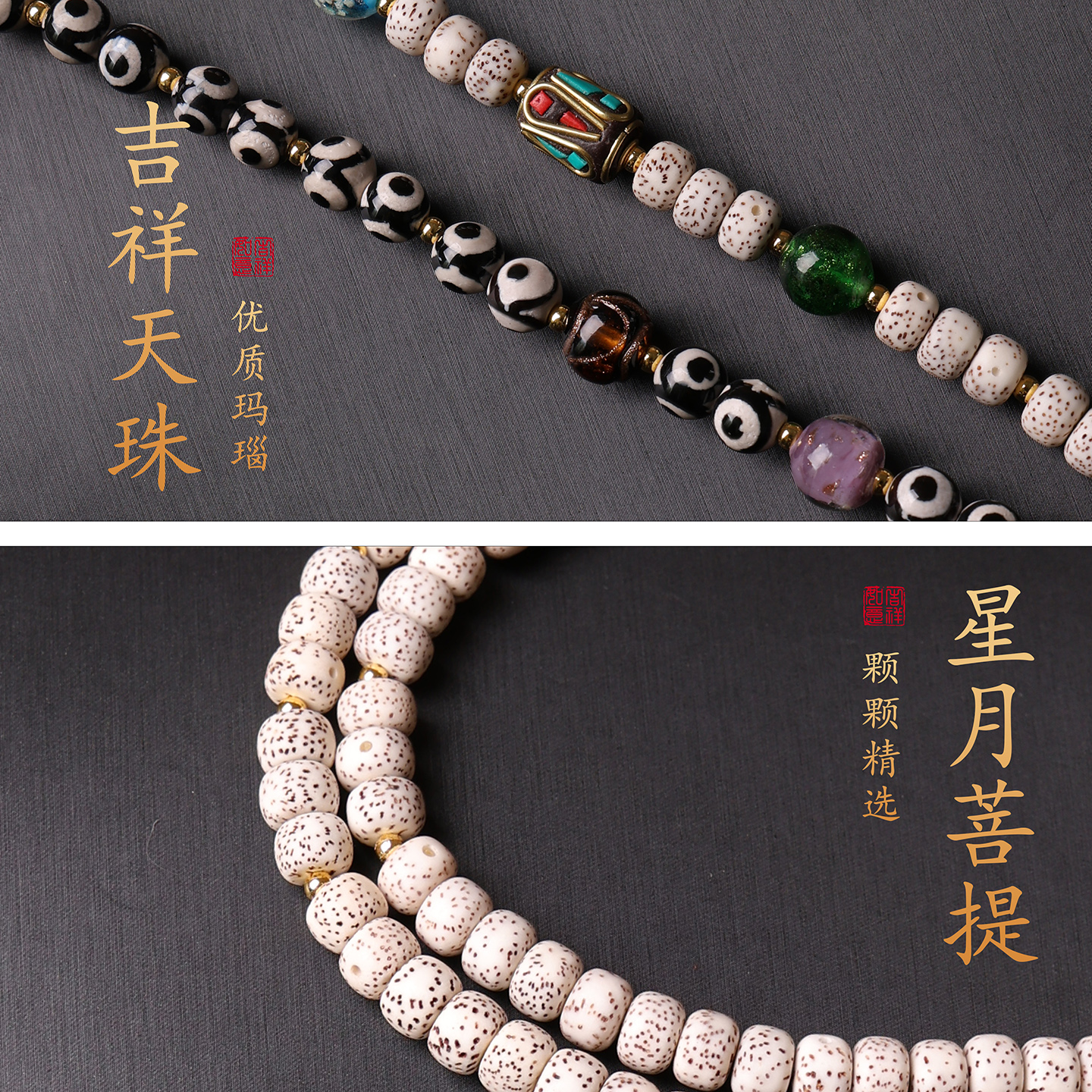 泰伽泰国佛牌链唐卡文玩吊坠绳项链琉璃藏式尼泊尔天珠星月菩提