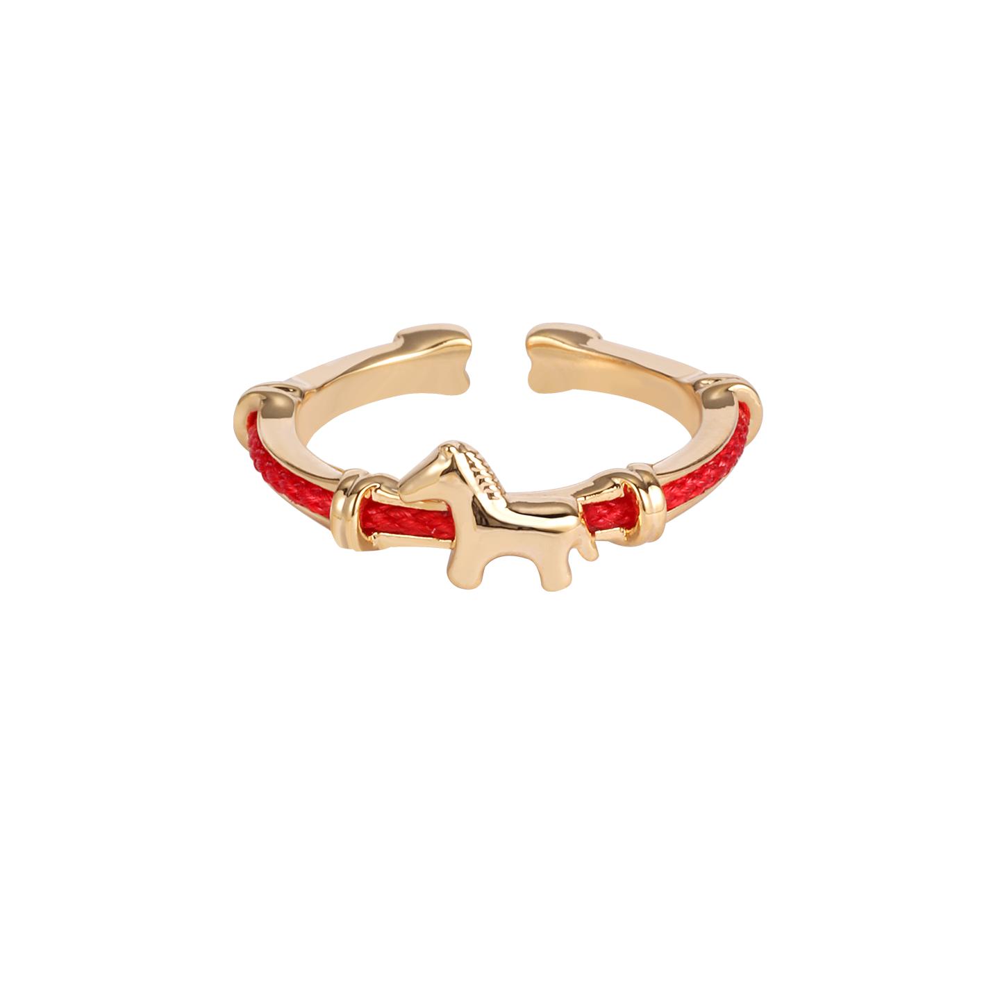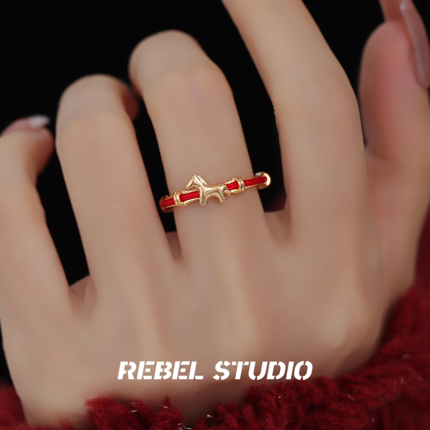 红色编绳马到成功戒指女复古新中式指环小众气质高级感开口食指戒