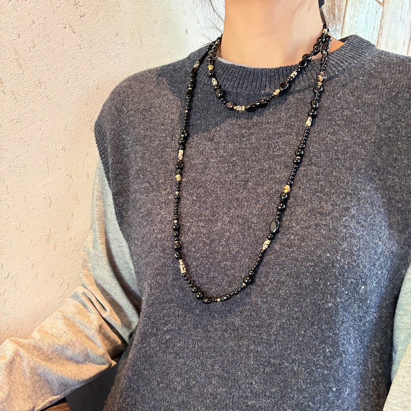 GOOGMO黑玛瑙串珠复古项圈项链长款多层叠戴毛衣链秋冬高级感配饰