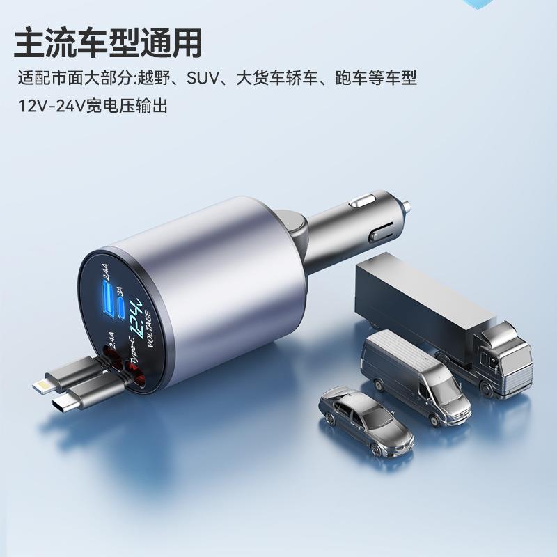PD27W车载充电器100W超级快充双线自由伸缩线四合一汽车点烟器