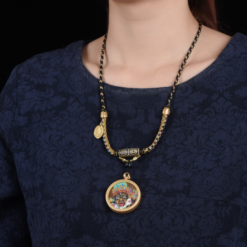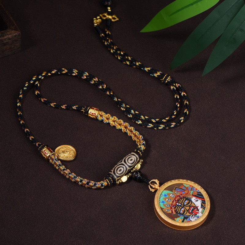 2026藏式吊坠绳唐卡天珠扎基拉姆桃花结编织挂件绳民族风复古项链