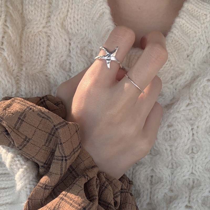 个性海星戒指女夸张时尚不规则星星S925镀银开口指环ins风食指戒