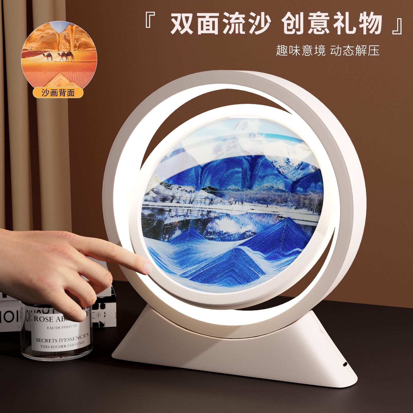 双面流沙画沙漏摆件办公室客厅电视柜酒柜装饰品轻奢生日礼物台灯