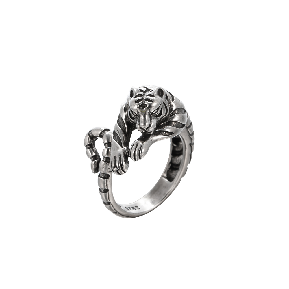 小老虎开口戒指男女新款国潮个性复古生肖尾戒戒指ins小众高级