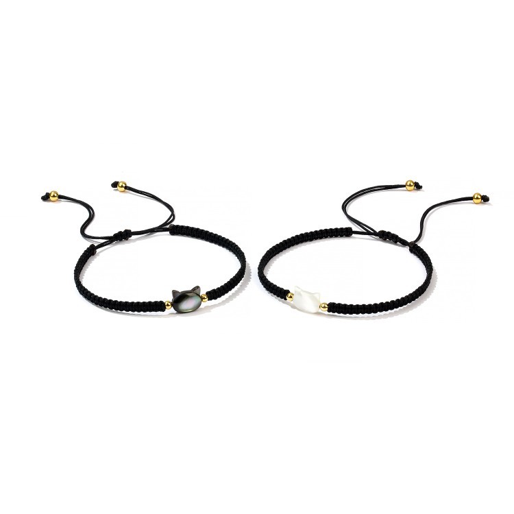 小众设计女贝壳黑色猫咪手链女手工编织手绳轻奢感手链闺蜜手串