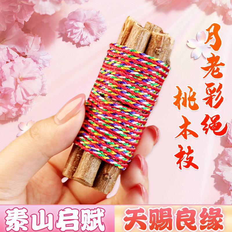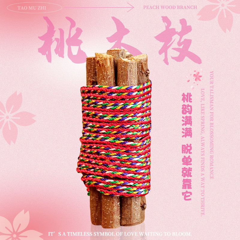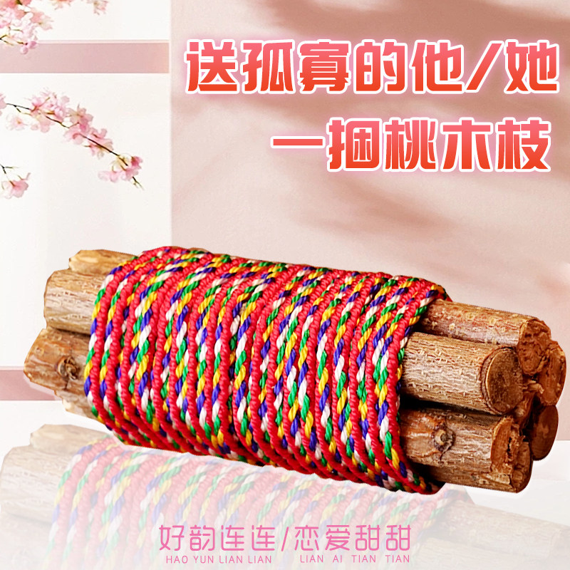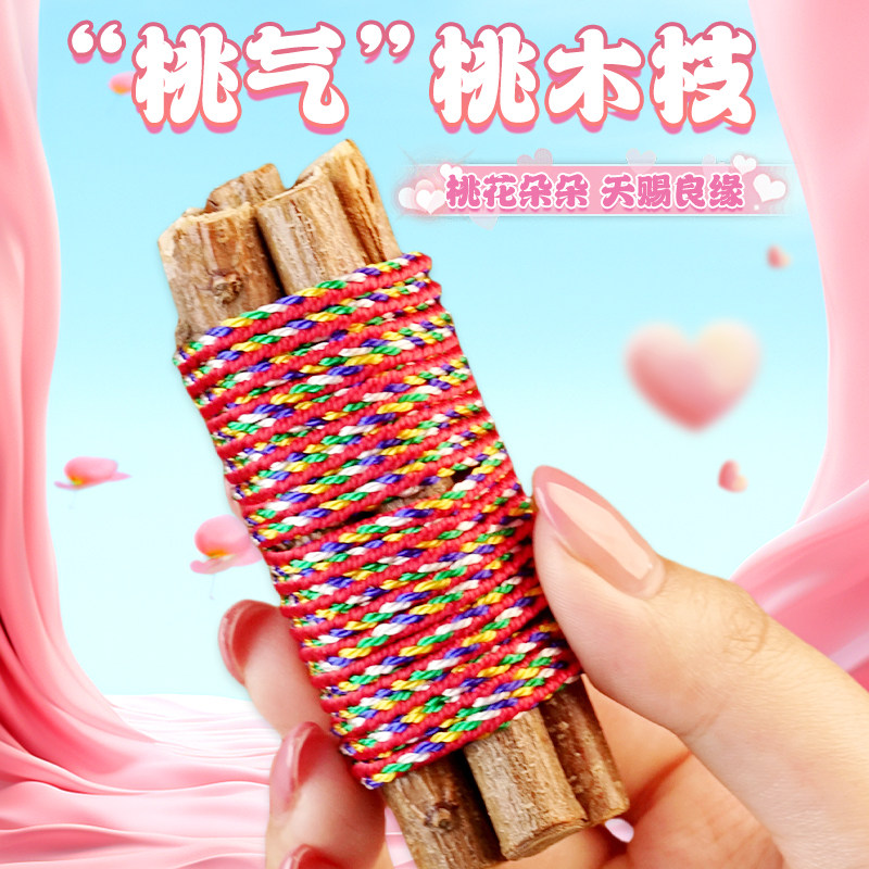老桃树枝七根桃木枝真桃花木东南枝桃木招桃花五彩绳手工编织挂件