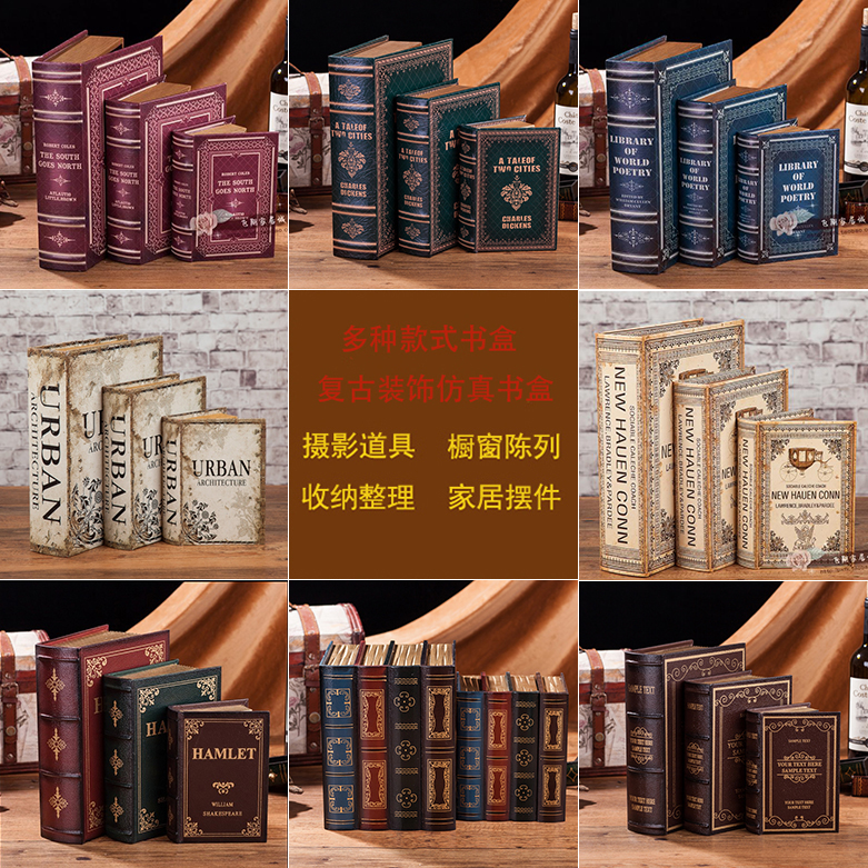 大号复古假书欧式书房书柜摆件装饰品书籍摄影道具书仿真书收纳盒