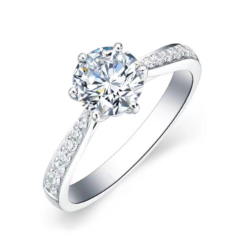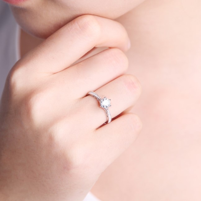 925纯银戒指 女大码大号经典六爪奢华结婚求婚高仿真50分小钻戒