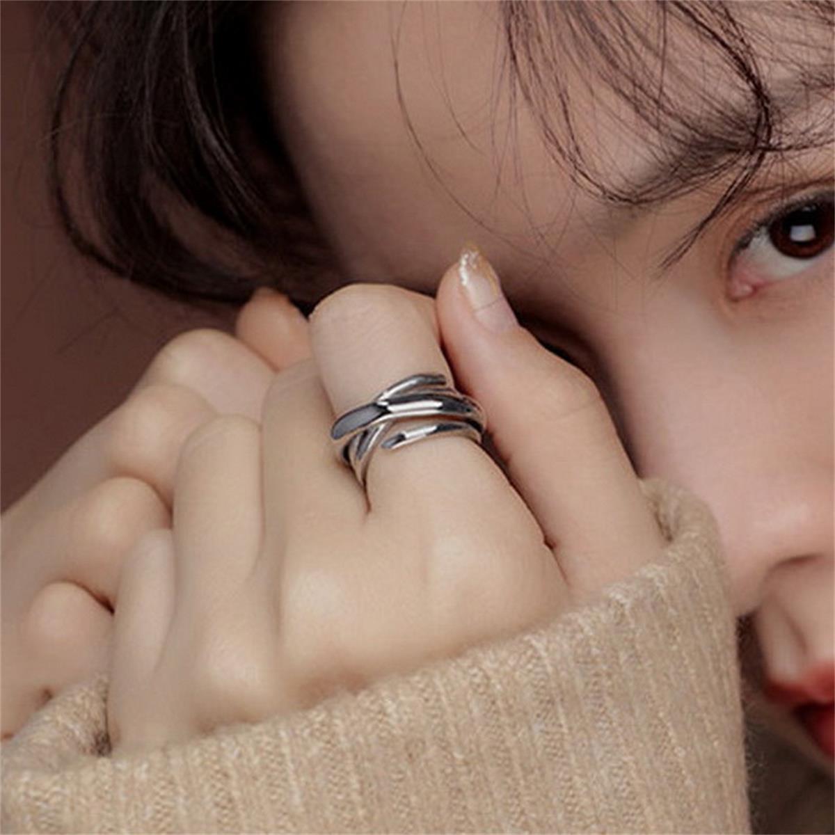 Silver Color Vintage Multilayer Lines Twist Open Rings For W