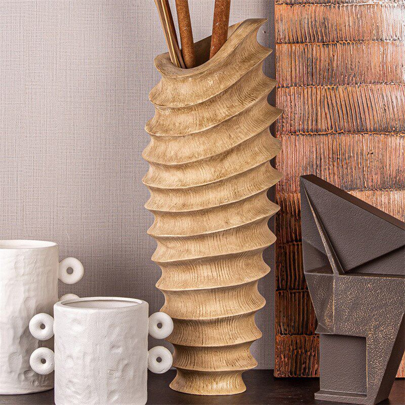 新品风土黄色螺旋造型摆件古朴肌理感花器树脂工艺品干花花插瓶