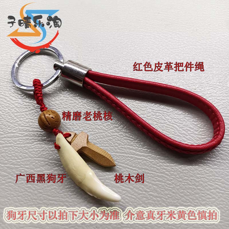 钥匙扣红黑绳狗牙齿真品男女本命年学生随身平安饰品车钥匙扣挂件