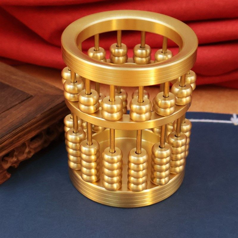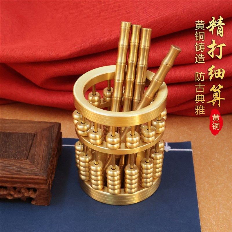 黄铜算盘笔筒摆件中式创意铜笔筒工艺品家居客厅书房办公室装饰品