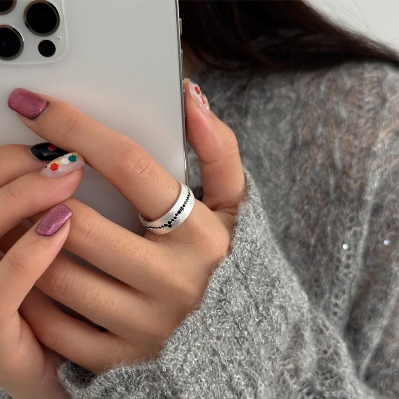 包邮磨砂黑色不规则戒指女时尚小众设计感法式简约时髦开口指环食