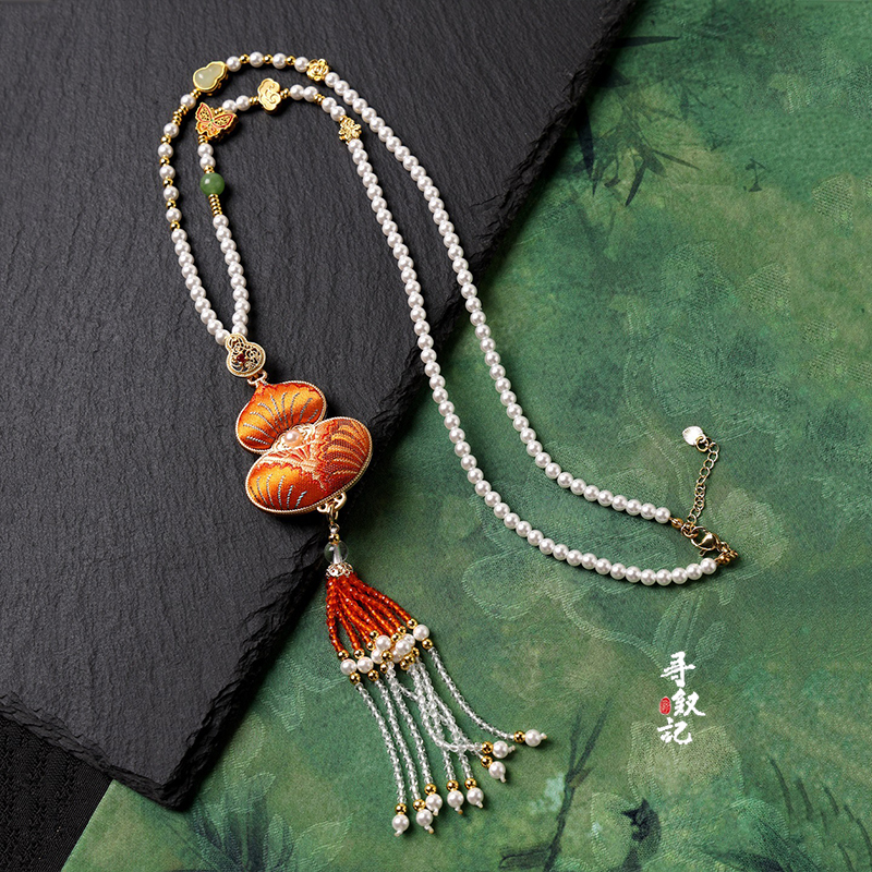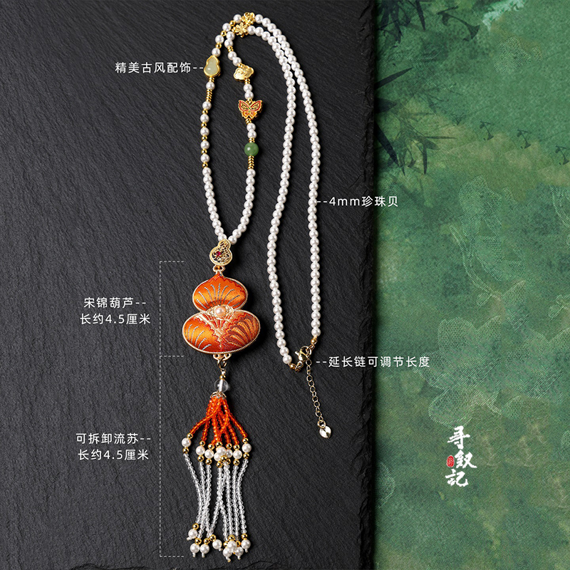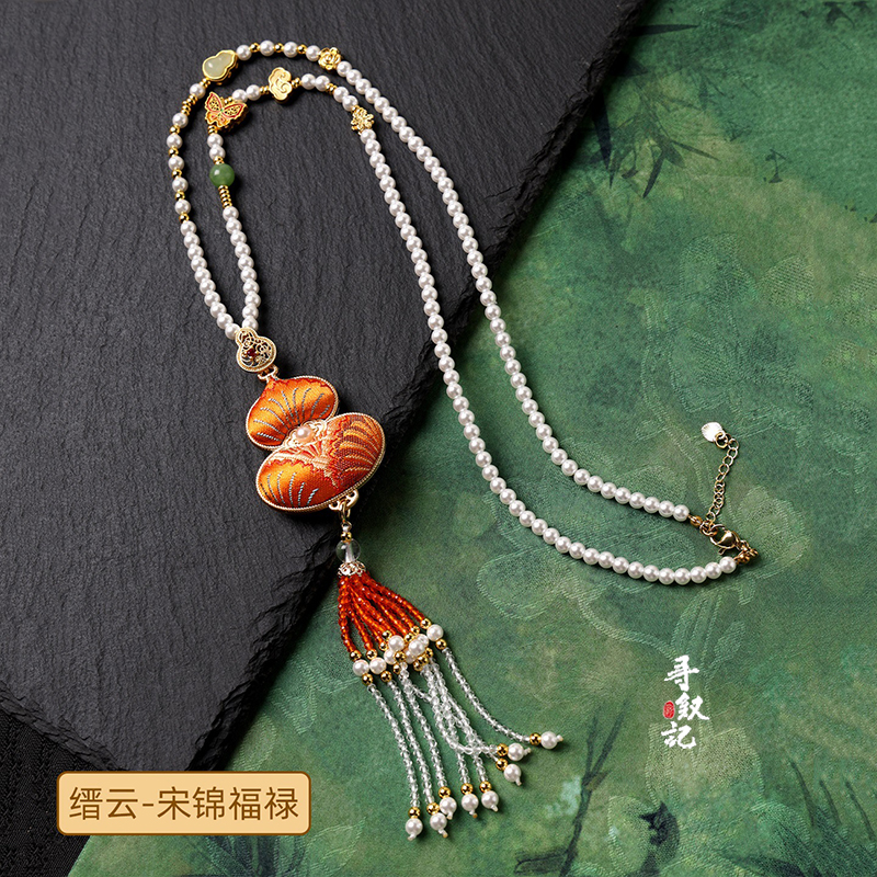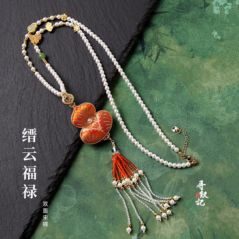 原创古风双面宋锦缙云福禄珍珠贝项链汉服旗袍配链宋式美学感配饰