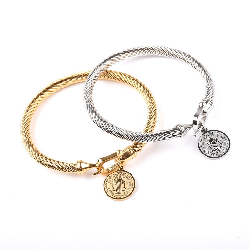 潮流欧美ins风设计感百搭气质手饰扭线U型钩钛钢手镯饰品