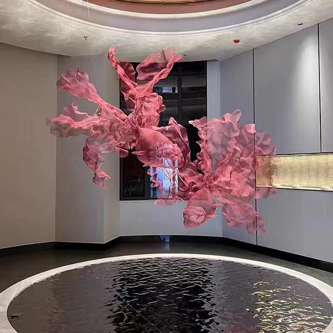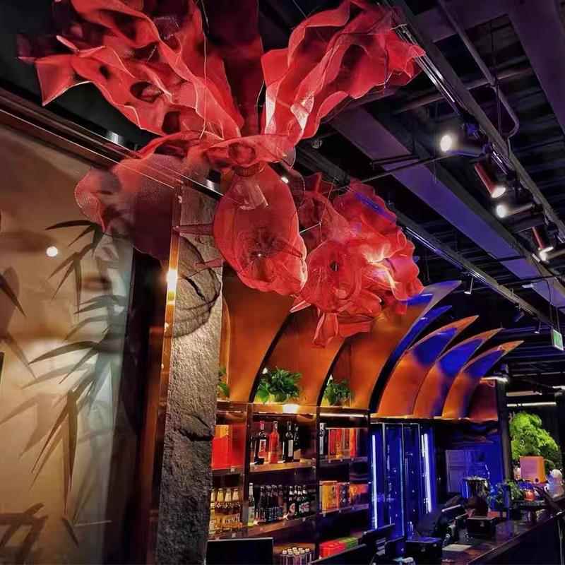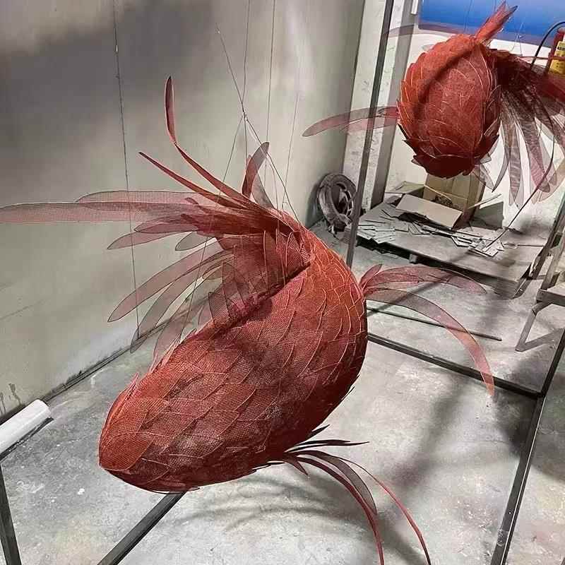 不锈钢铁艺金鱼吊饰餐厅空中金属网鱼形雕塑悬挂装置艺术挂件定制