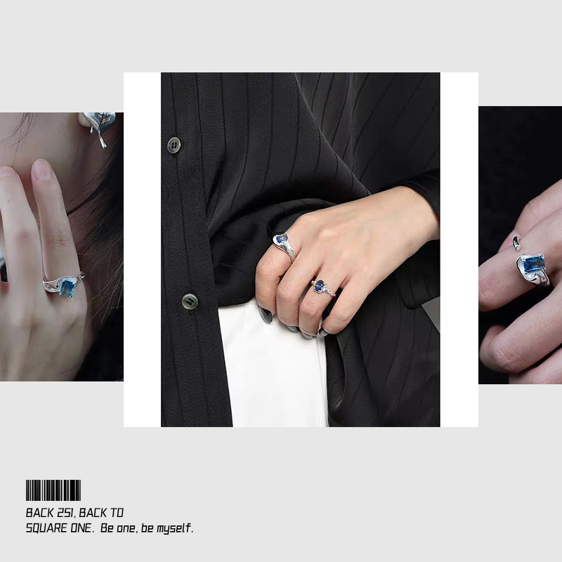 小众设计蓝色渐变锆石开口戒指女甜酷ins风轻奢高级感个性食指环