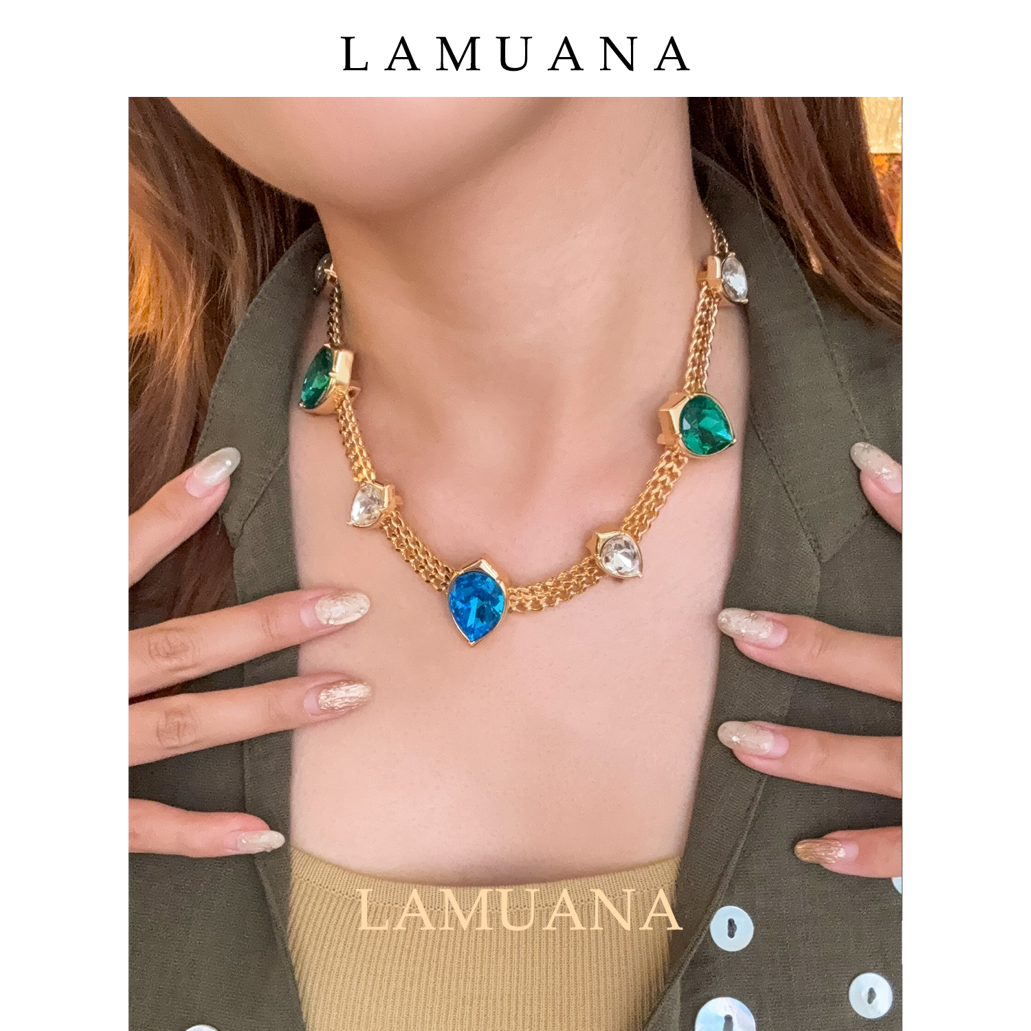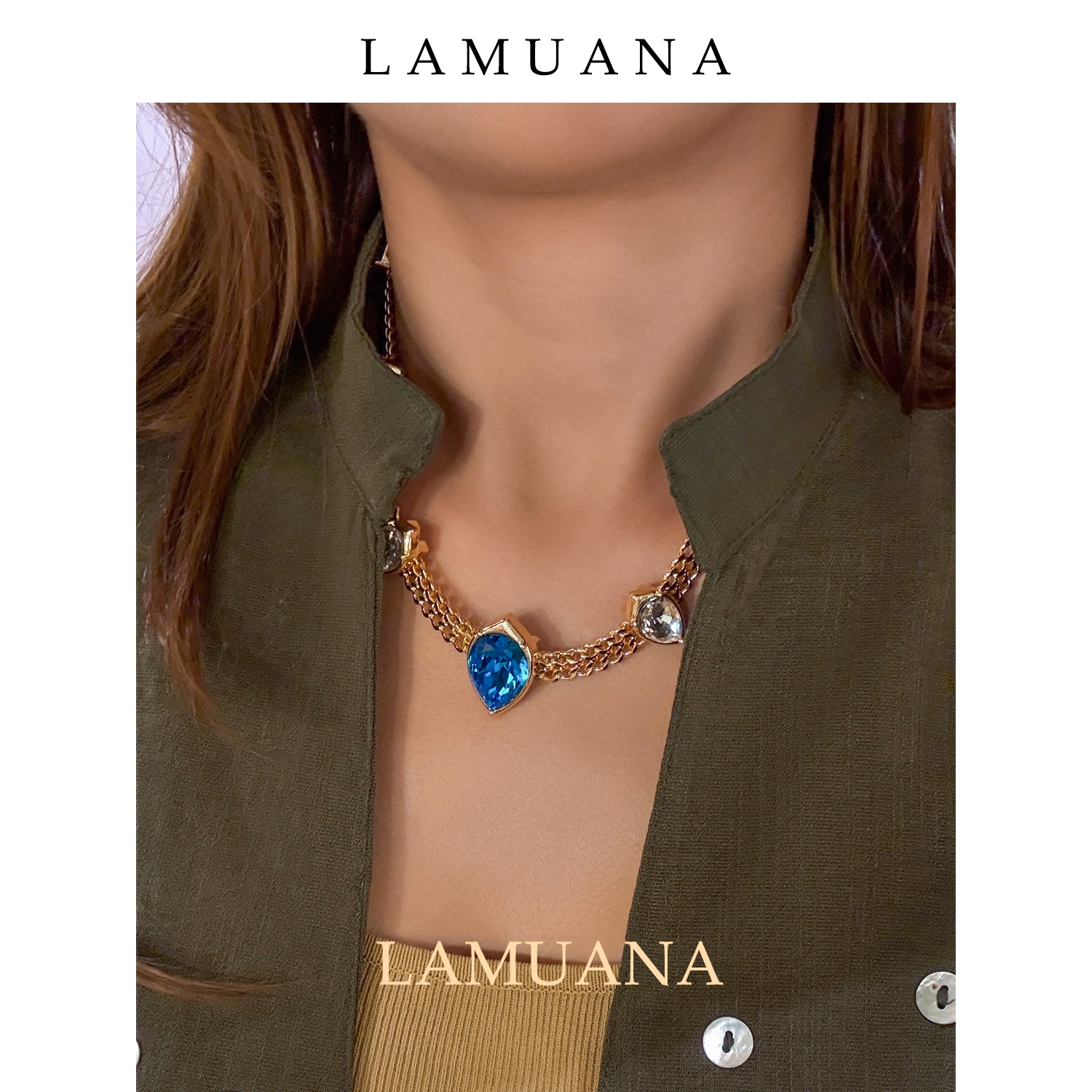 LAMUANA宽蛇骨水滴彩锆系列小众设计感复古法式夸张锁骨链choker
