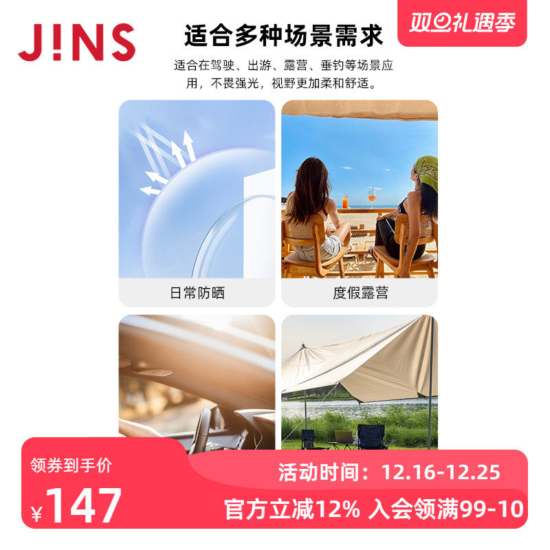 JINS睛姿大框圆框太阳镜套镜防紫外线墨镜可套近视镜外LRF23A175