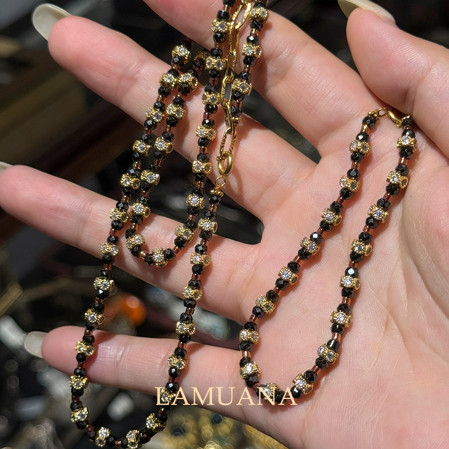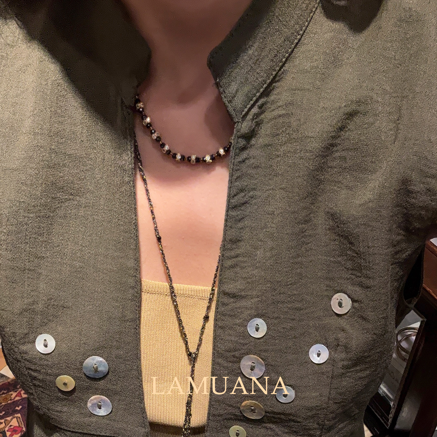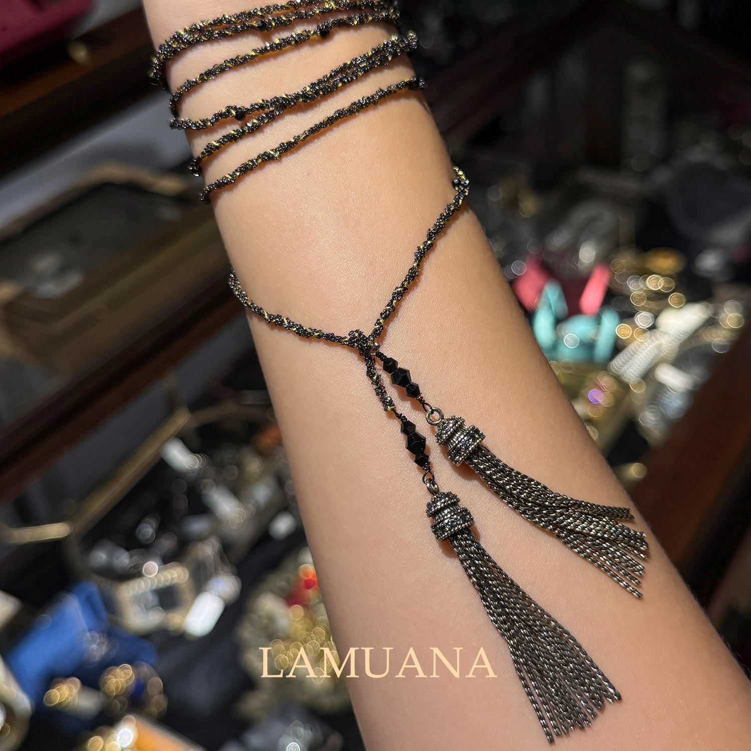 LAMUANA黑金编织绳流苏项链小众设计感手工串珠多层颈链毛衣链