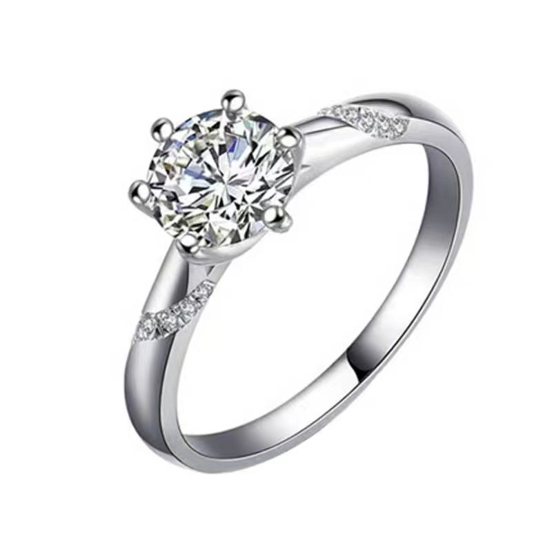 进口D色莫桑石钻戒女婚戒S925银镀铂金情侣戒指通灵六爪求婚礼物