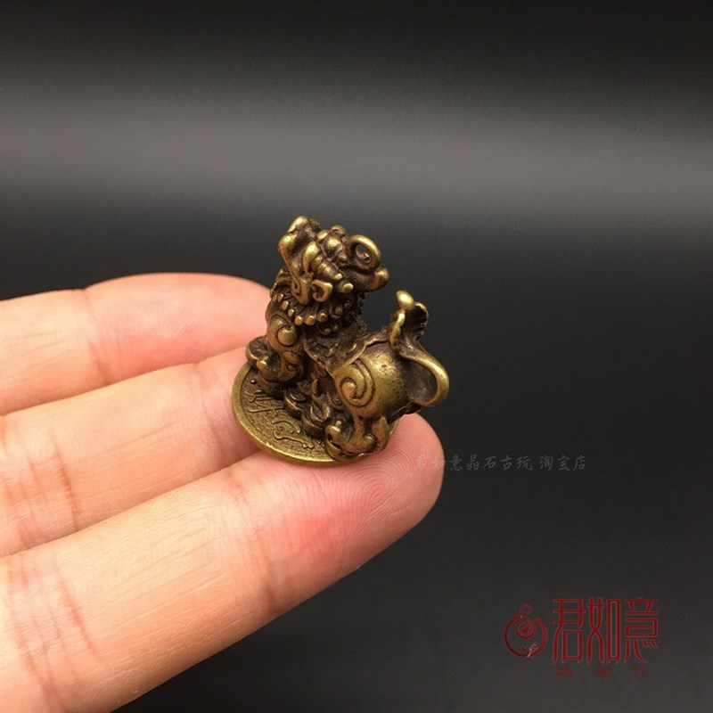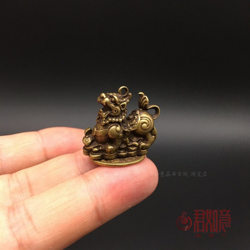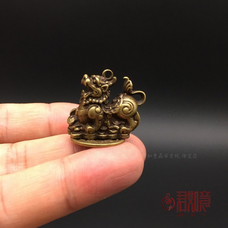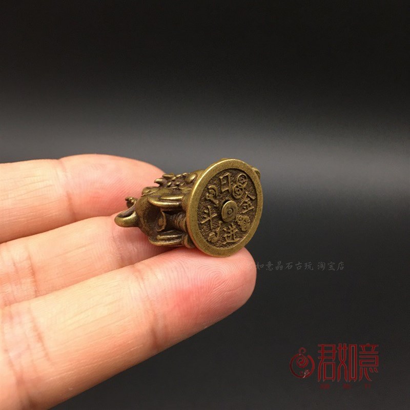 实心黄铜旋转铜钱貔貅挂件 全铜元宝小貔貅铜貔R貅旋转铜钱钥匙扣