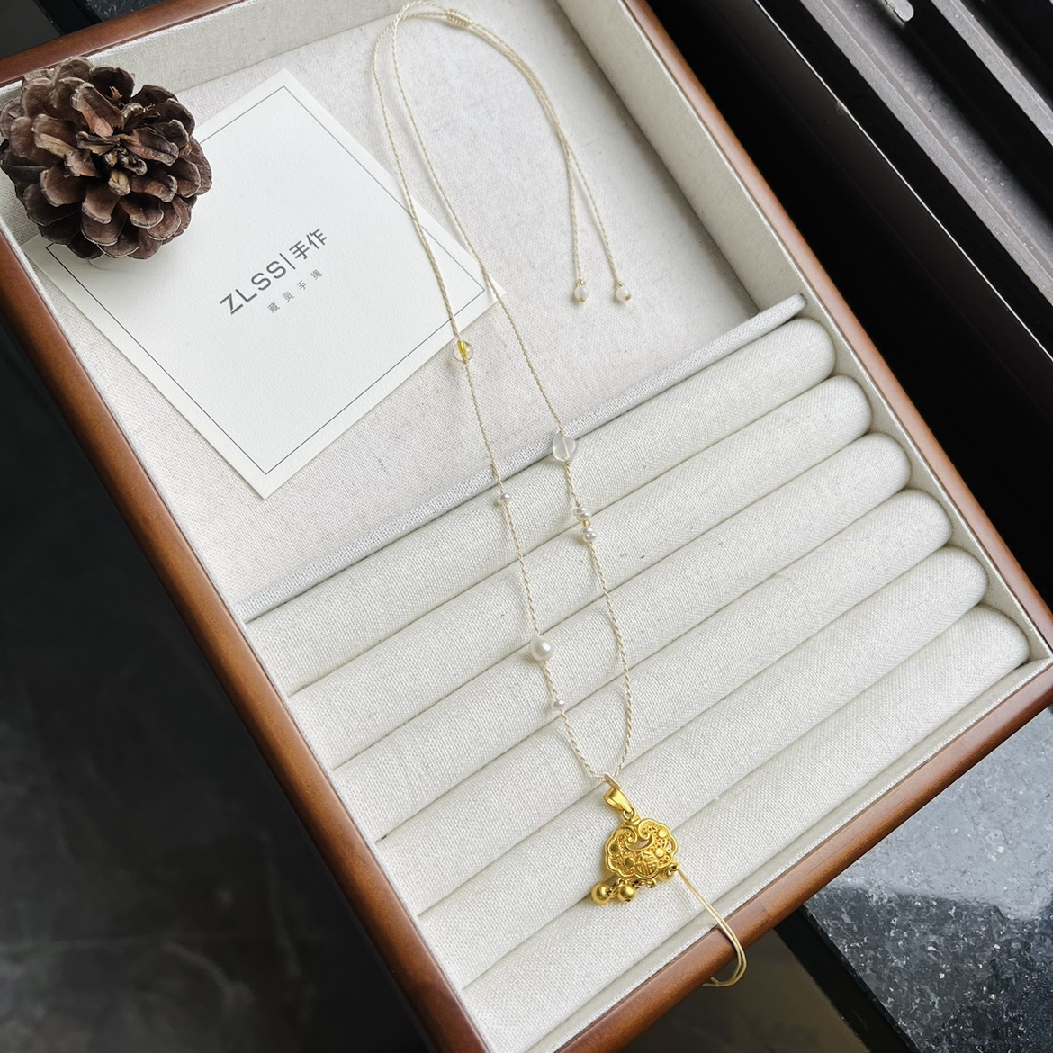 原创手工编织精致细项链绳清冷风女锁骨链百搭可搭黄金锁玉平安扣