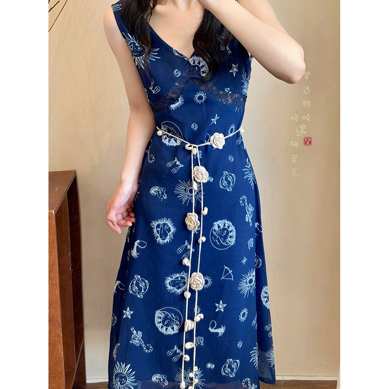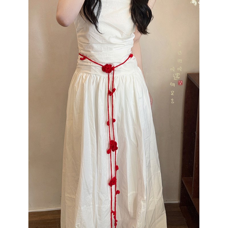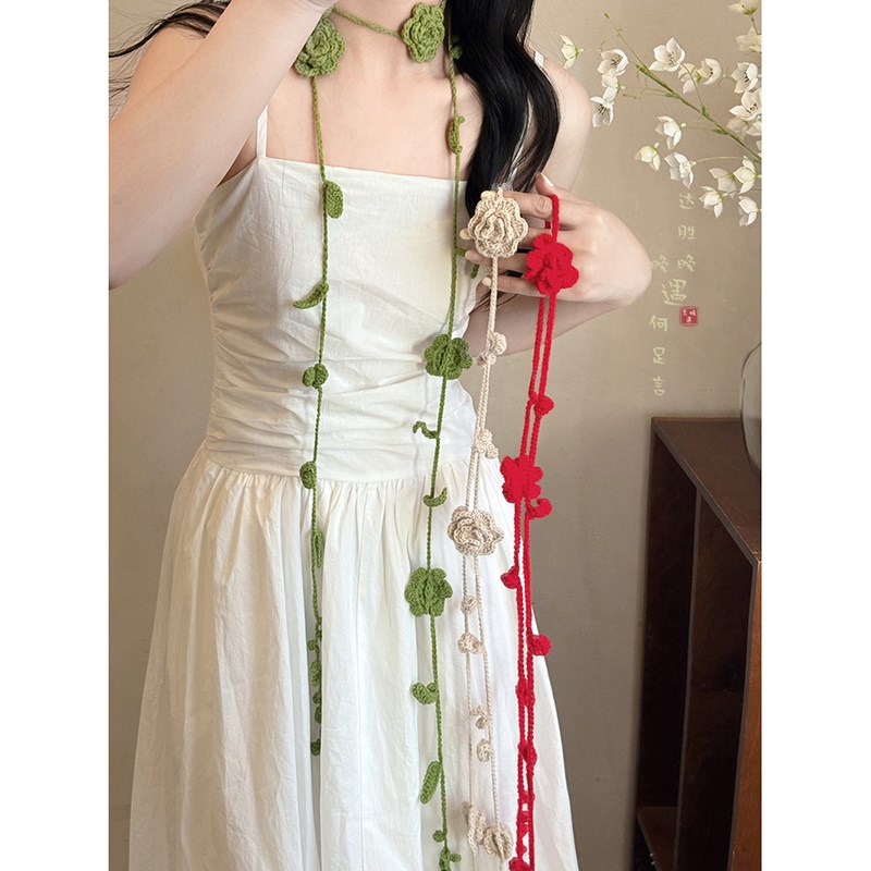 手工编织花朵系脖细长条项链女多巴胺腰链腰带腰间配饰颈饰配裙子