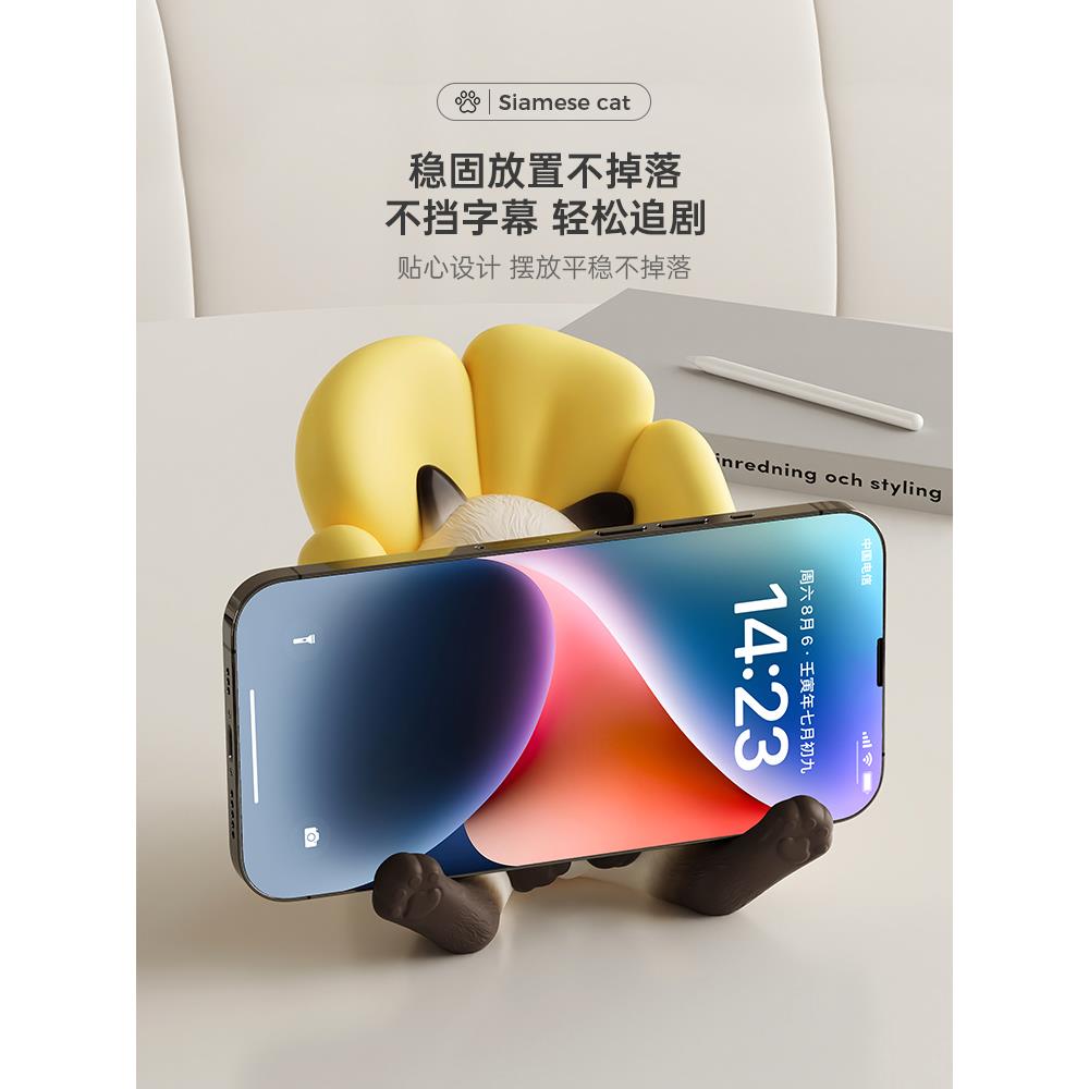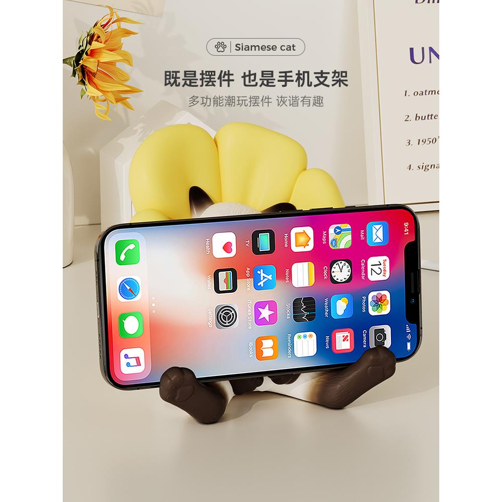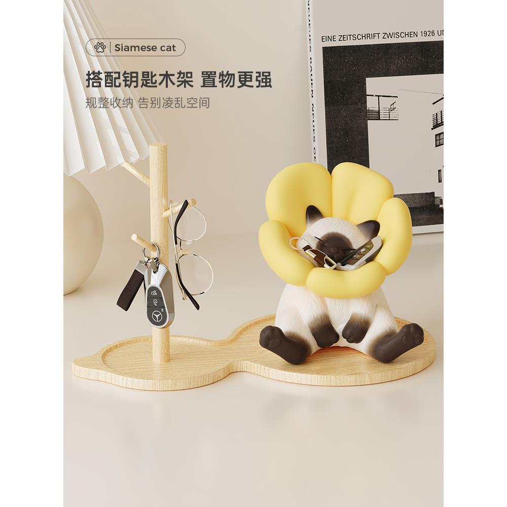 卡通暹罗猫手机支架桌面可爱钥匙收纳玄关摆件置物办公室工位治愈