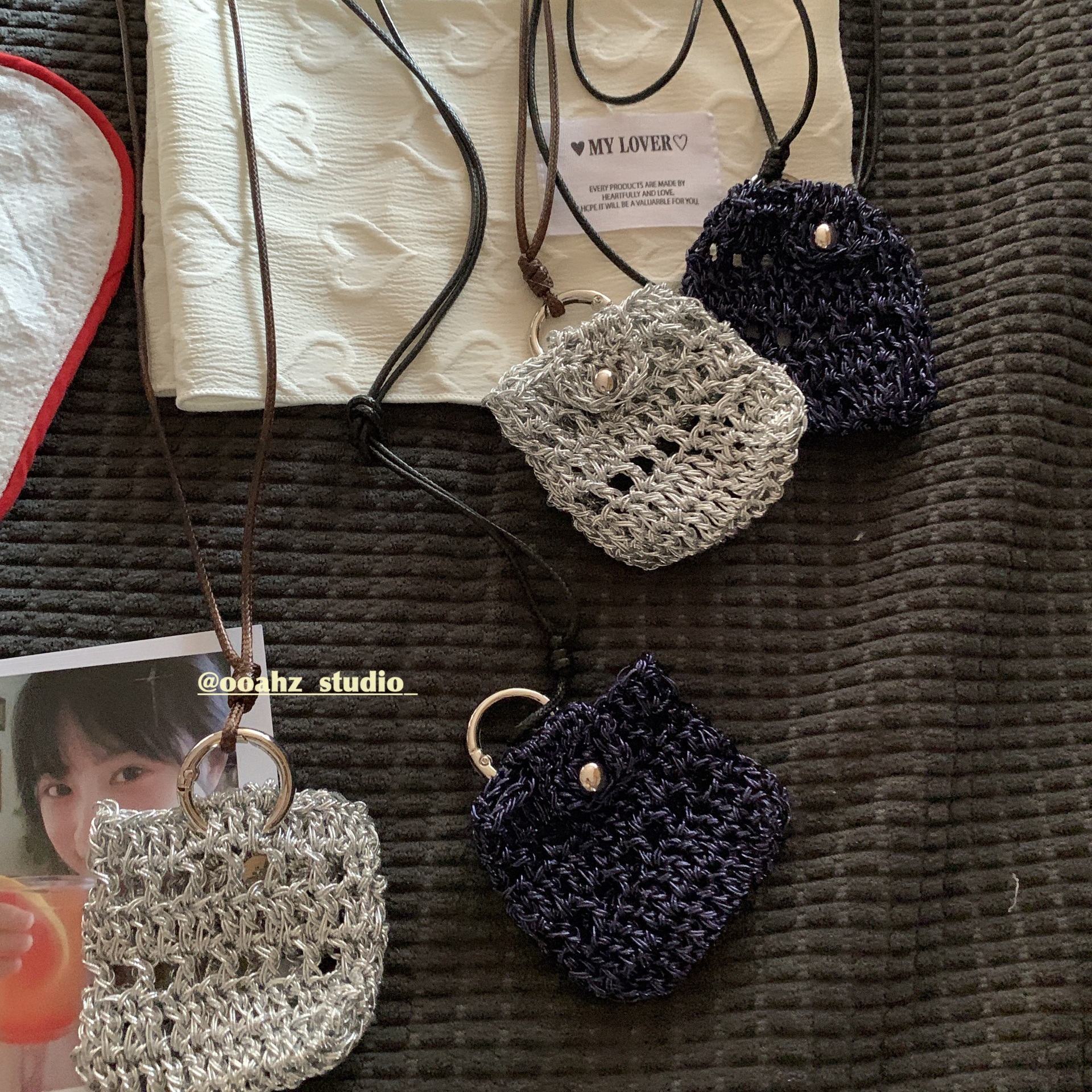 闪银耳机包~手工编织挂脖可伸缩毛衣链 小众凹造型搭配服饰钥匙包